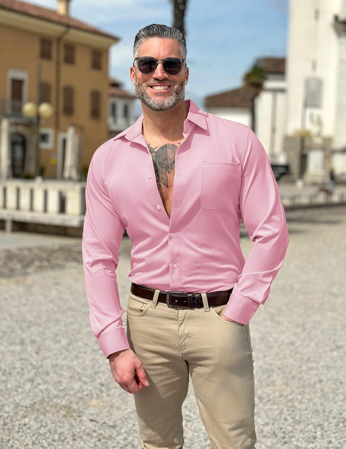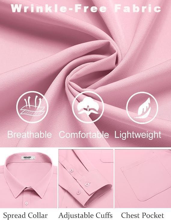 • COOFANDY Mens Dress Shirts Wrinkle Free Long Sleeve Button Down Shirts Formal Business Shirt(Pink)