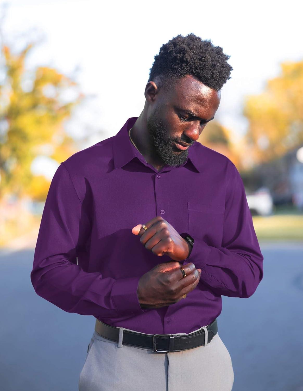 COOFANDY Mens Dress Shirts Wrinkle Free Long Sleeve Button Down Shirts Formal Business Shirt(Purple)