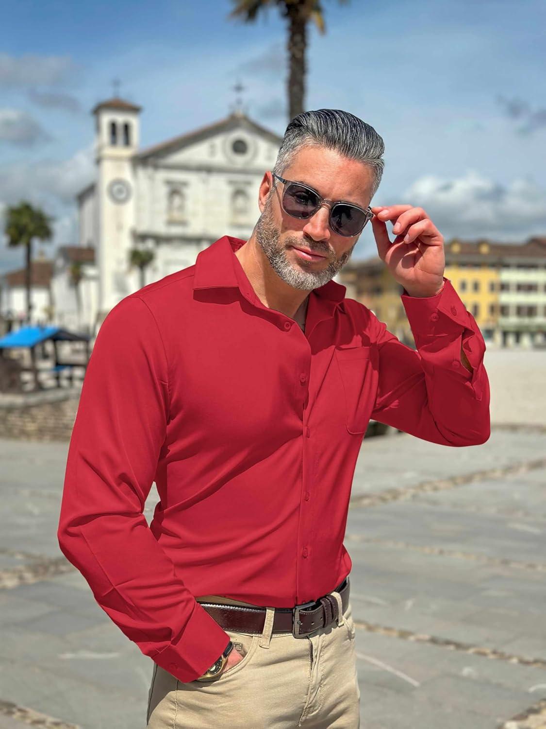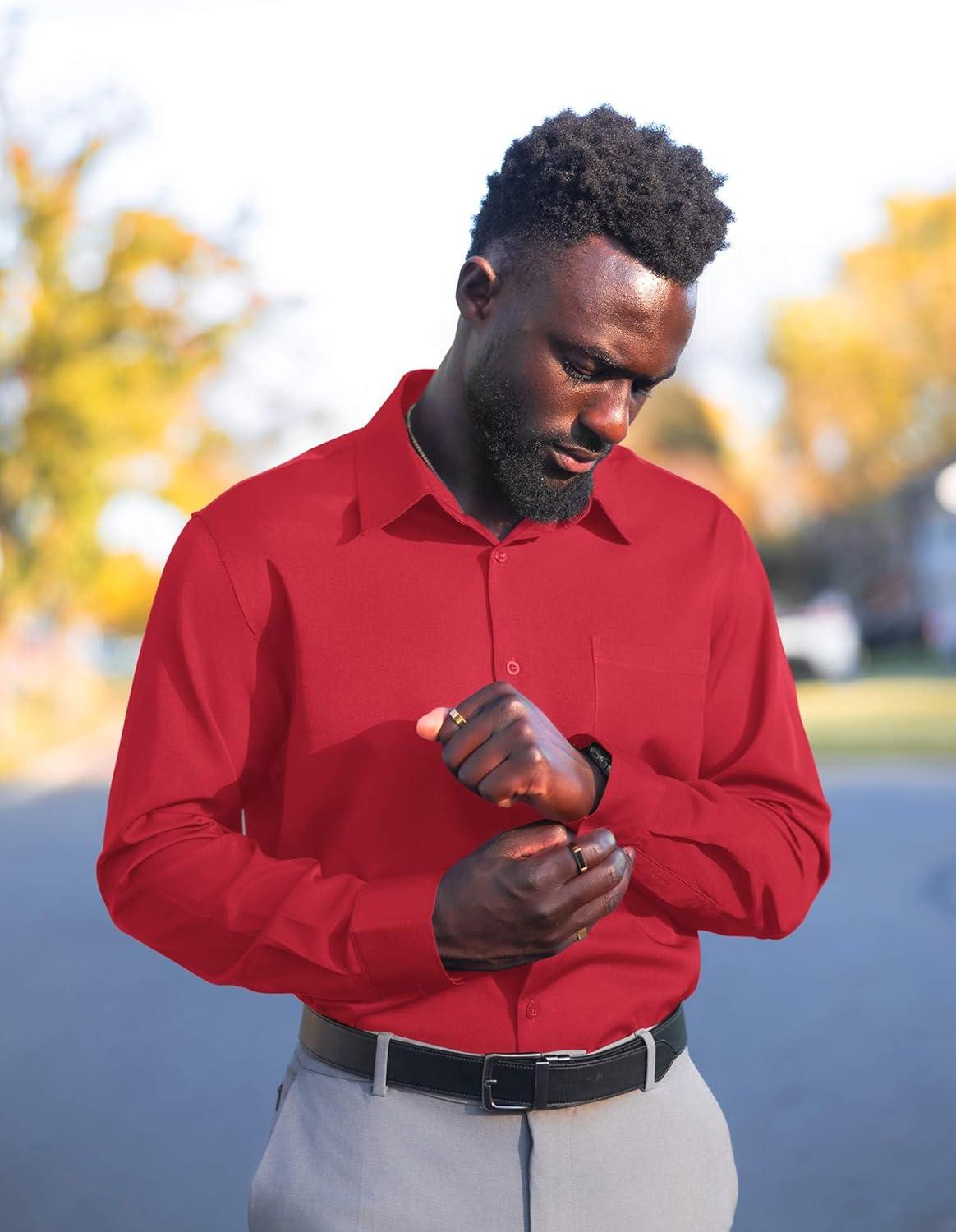 COOFANDY Mens Dress Shirts Wrinkle Free Long Sleeve Button Down Shirts Formal Business Shirt(Red)