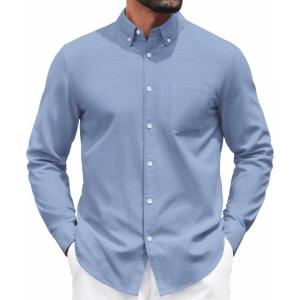 • COOFANDY Mens Dress Shirts Wrinkle Free Long Sleeve Button Down Shirts Formal Business Shirt(Ocean Blue)