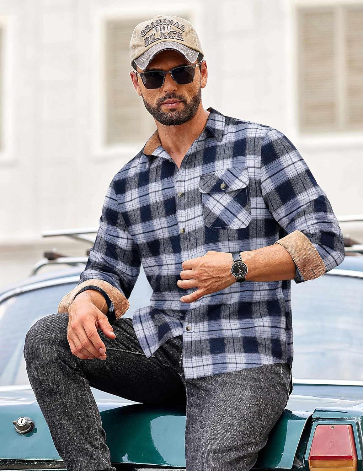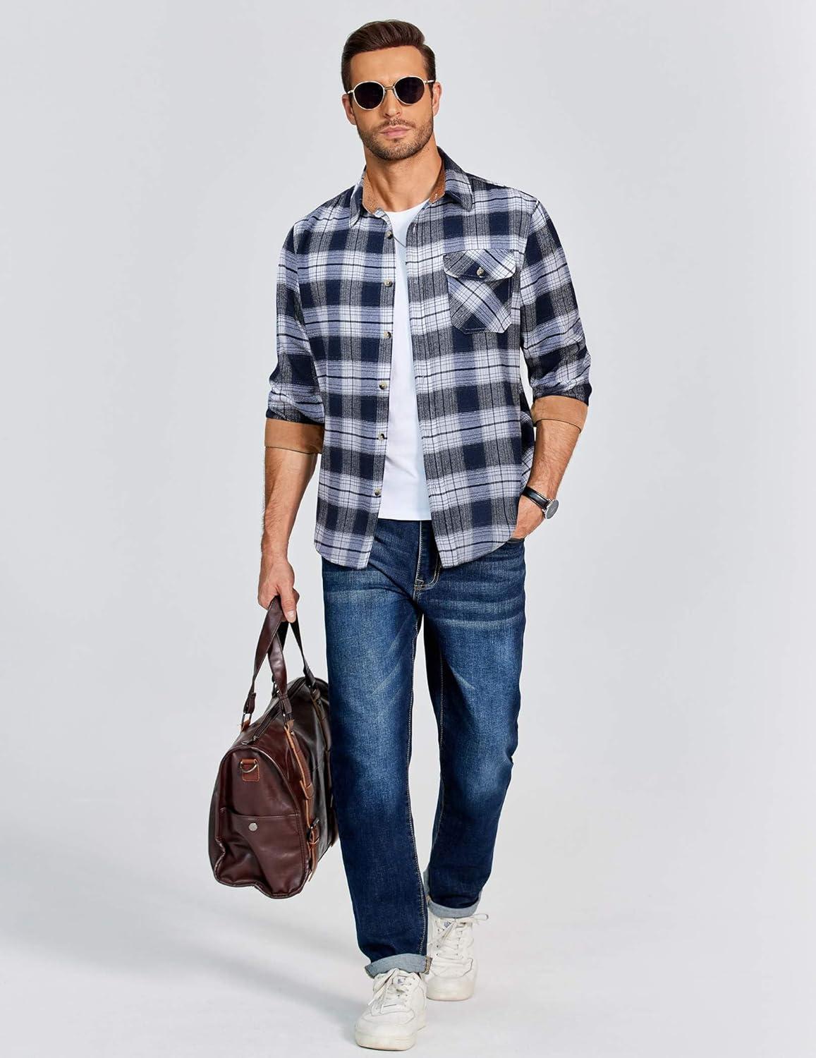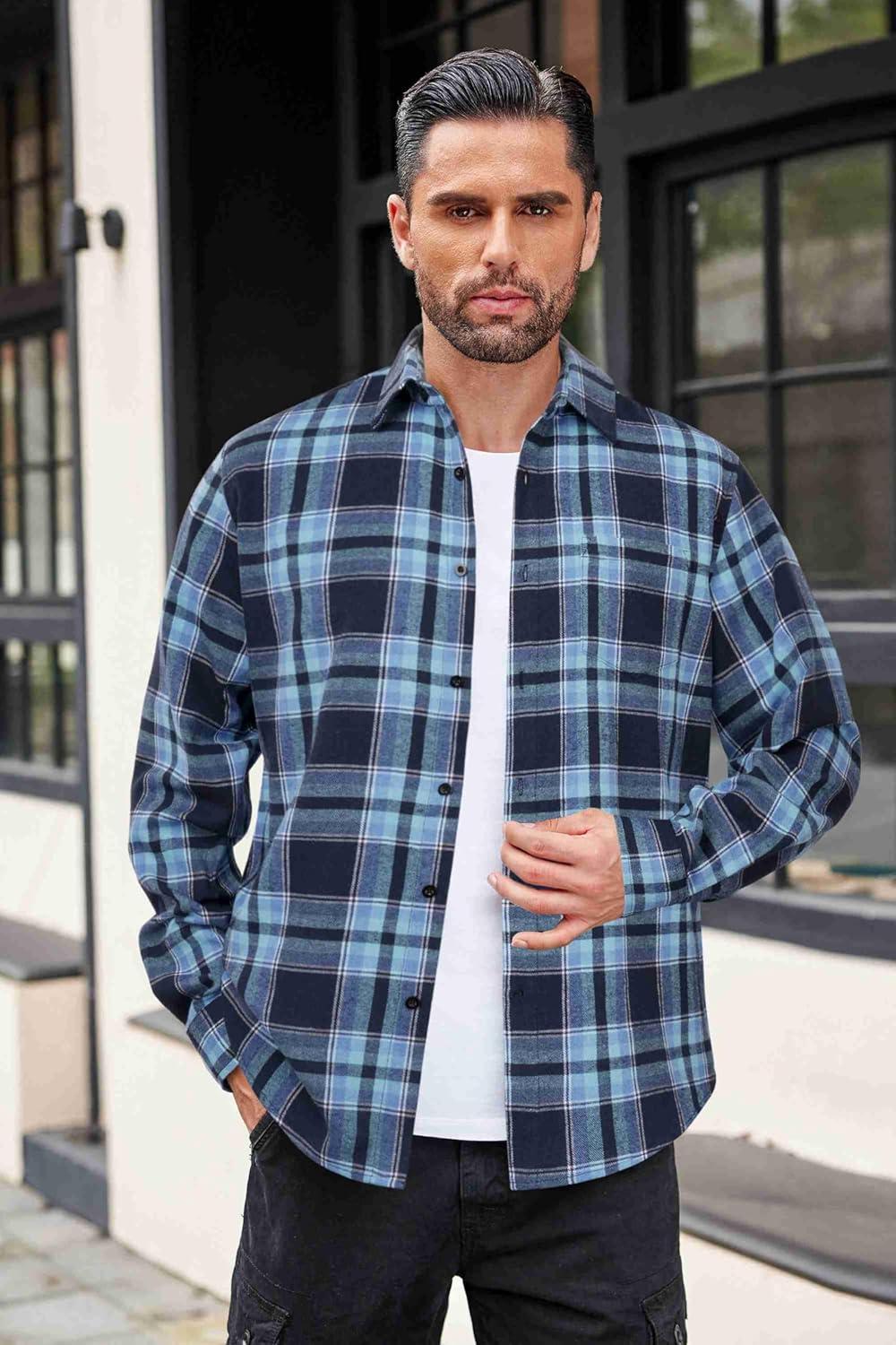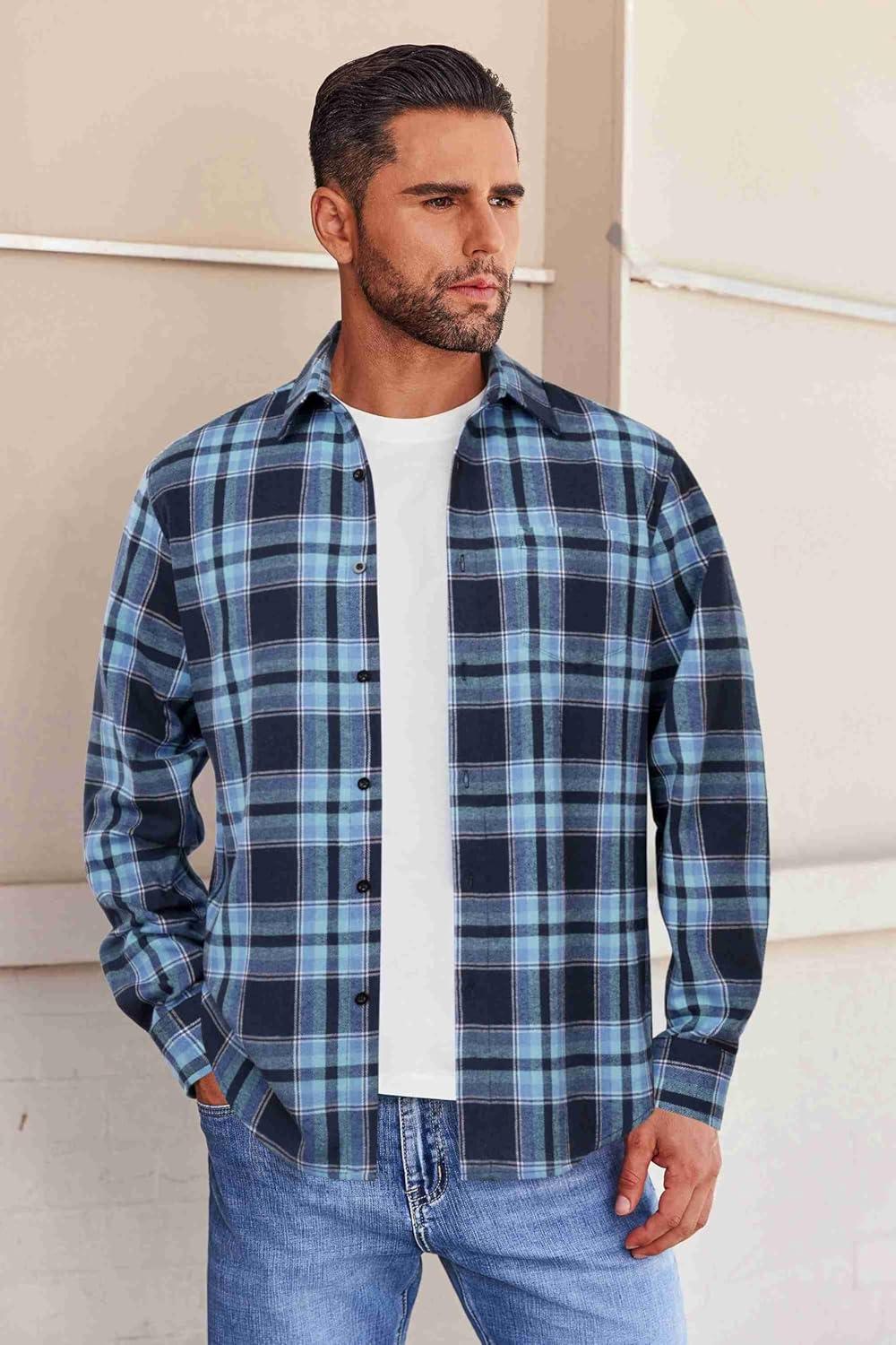 • COOFANDY Mens Flannel Shirts Long Sleeve Button Down Shirt with Pocket Casual Shirts Work Shirts for Men(Blue Plaid)