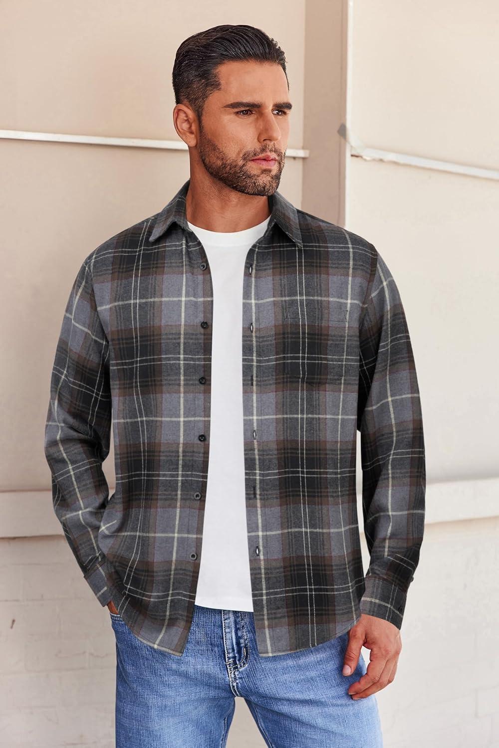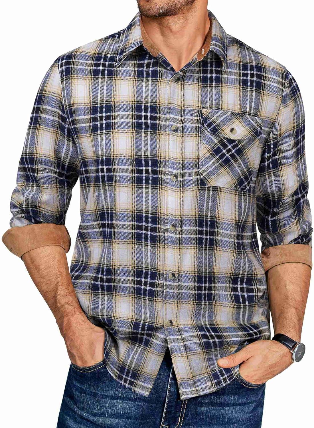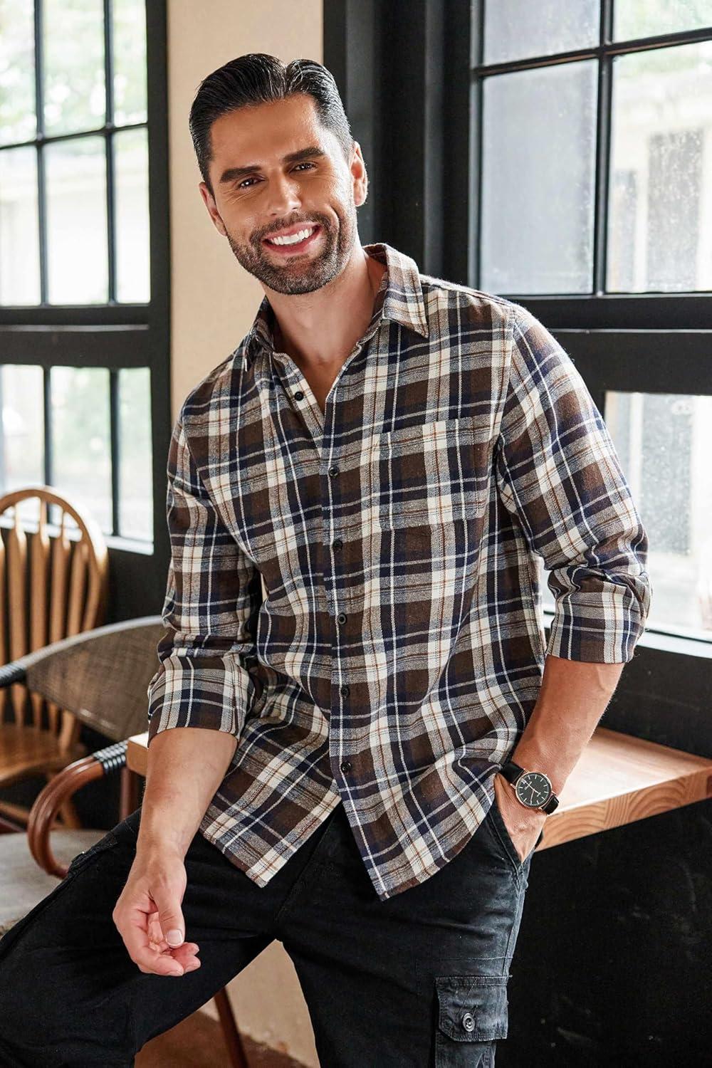 • COOFANDY Mens Flannel Shirts Long Sleeve Button Down Shirt with Pocket Casual Shirts Work Shirts for Men(Blue Brown)