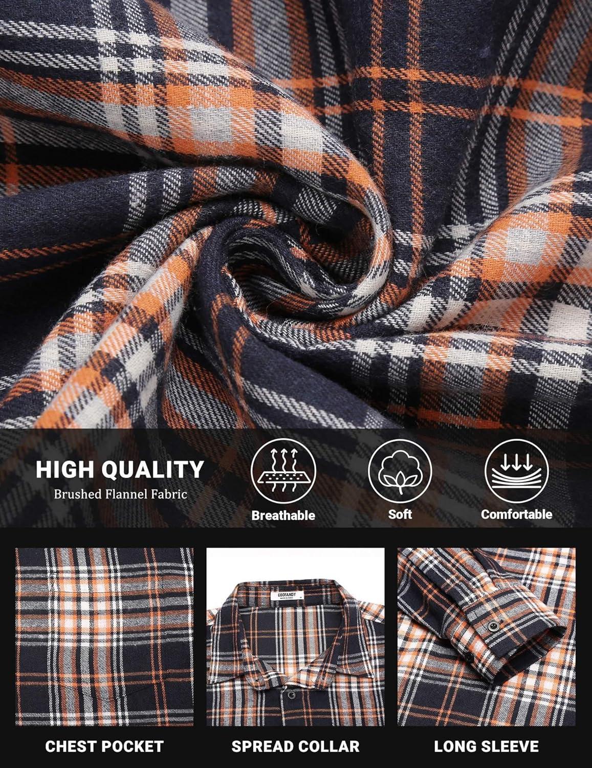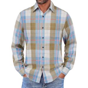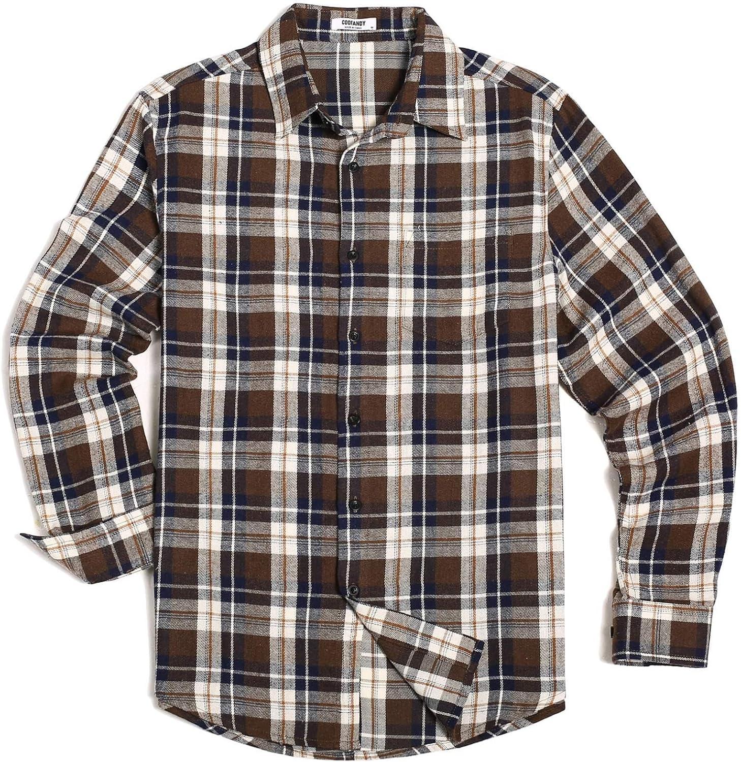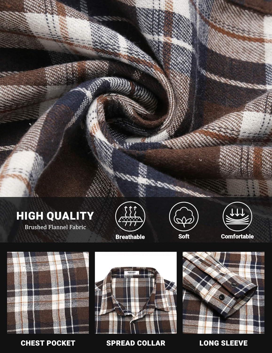 • COOFANDY Mens Flannel Shirts Long Sleeve Button Down Shirt with Pocket Casual Shirts Work Shirts for Men(Blue Brown)