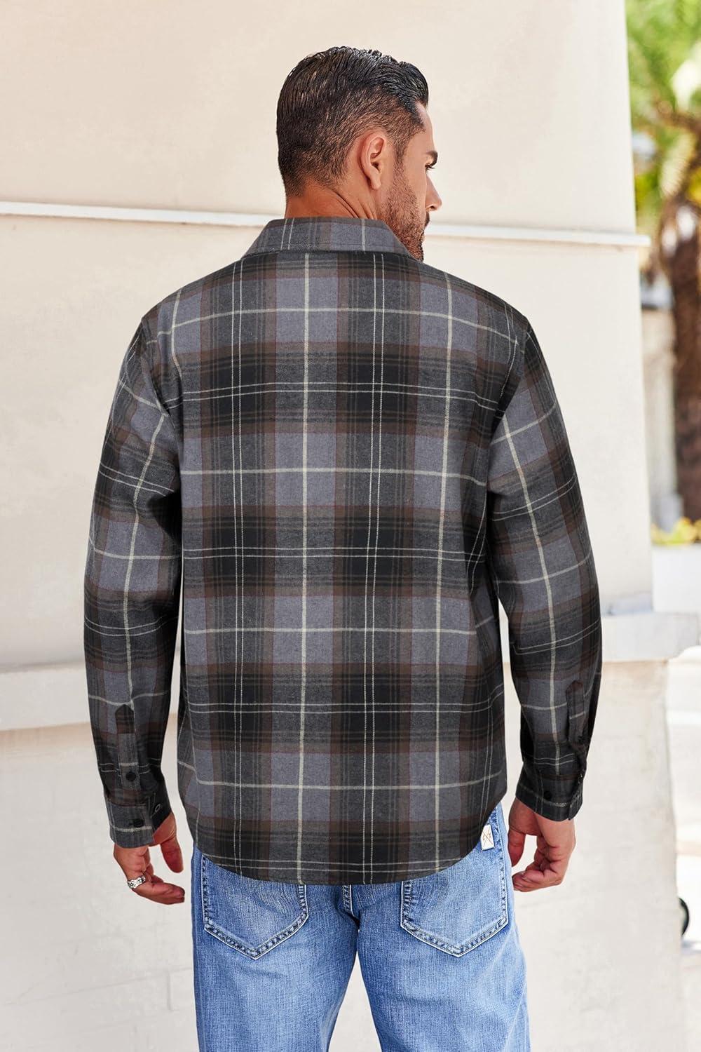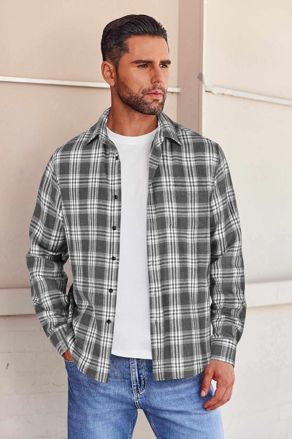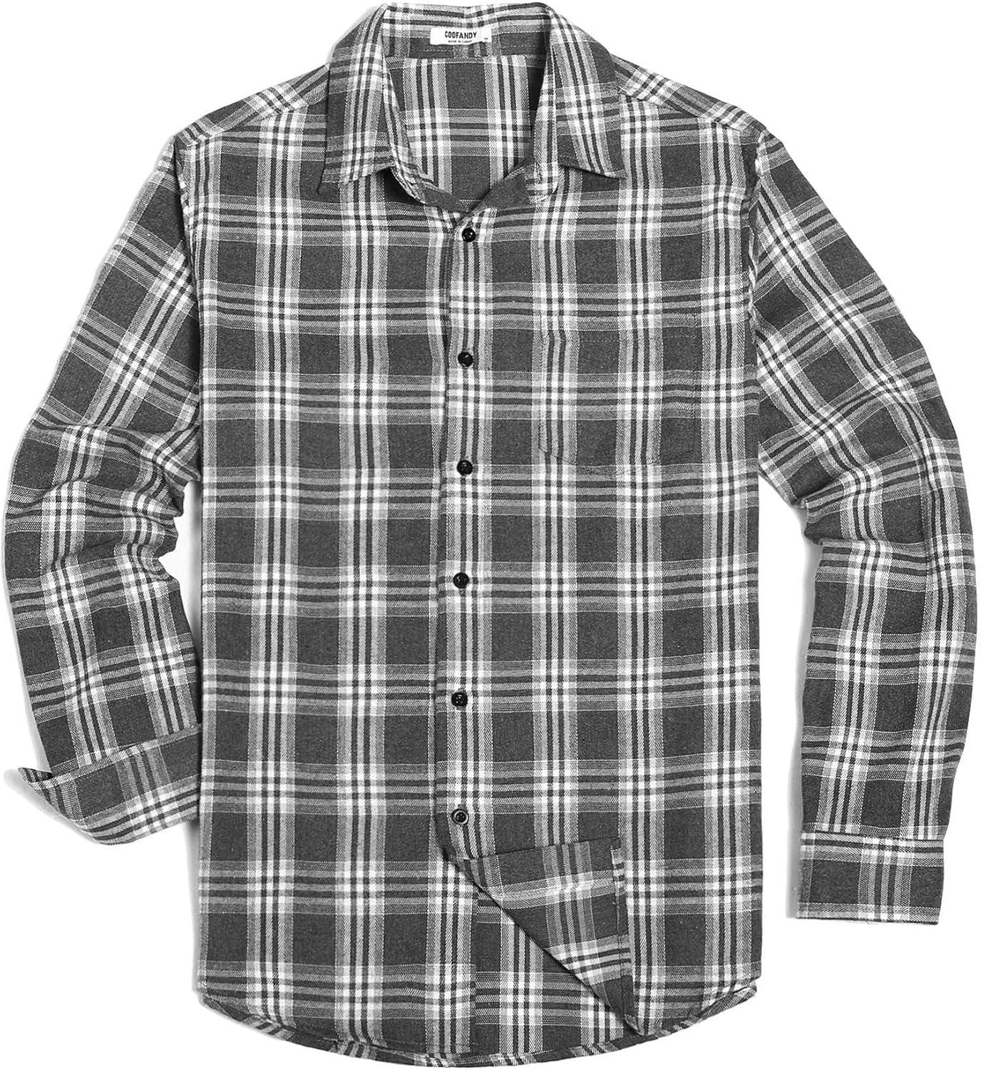 COOFANDY Mens Flannel Shirts Long Sleeve Button Down Shirt with Pocket Casual Shirts Work Shirts for Men(Dark Grey and White)