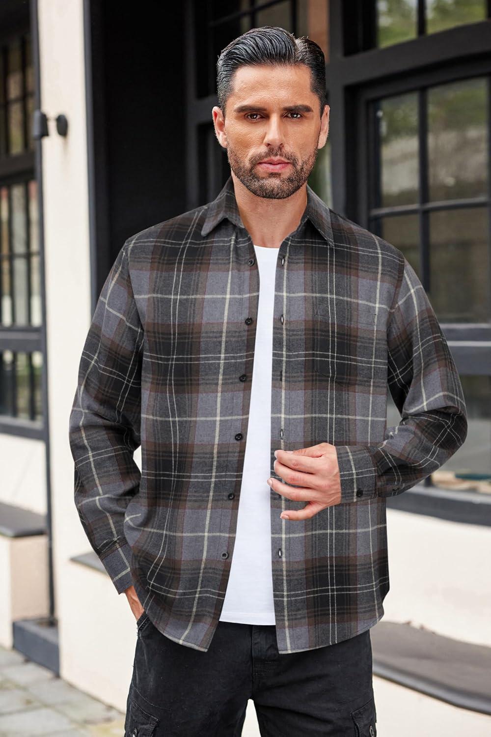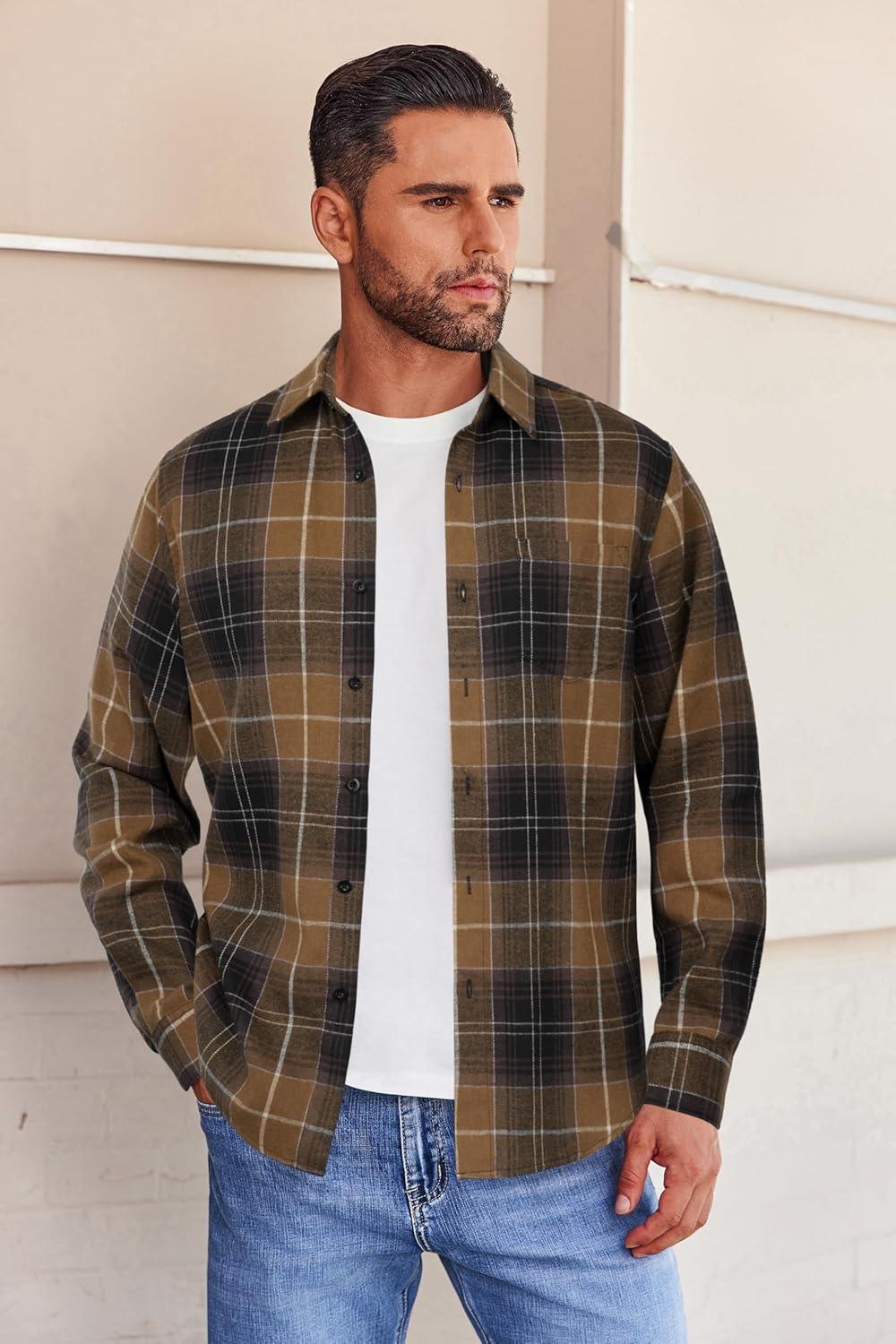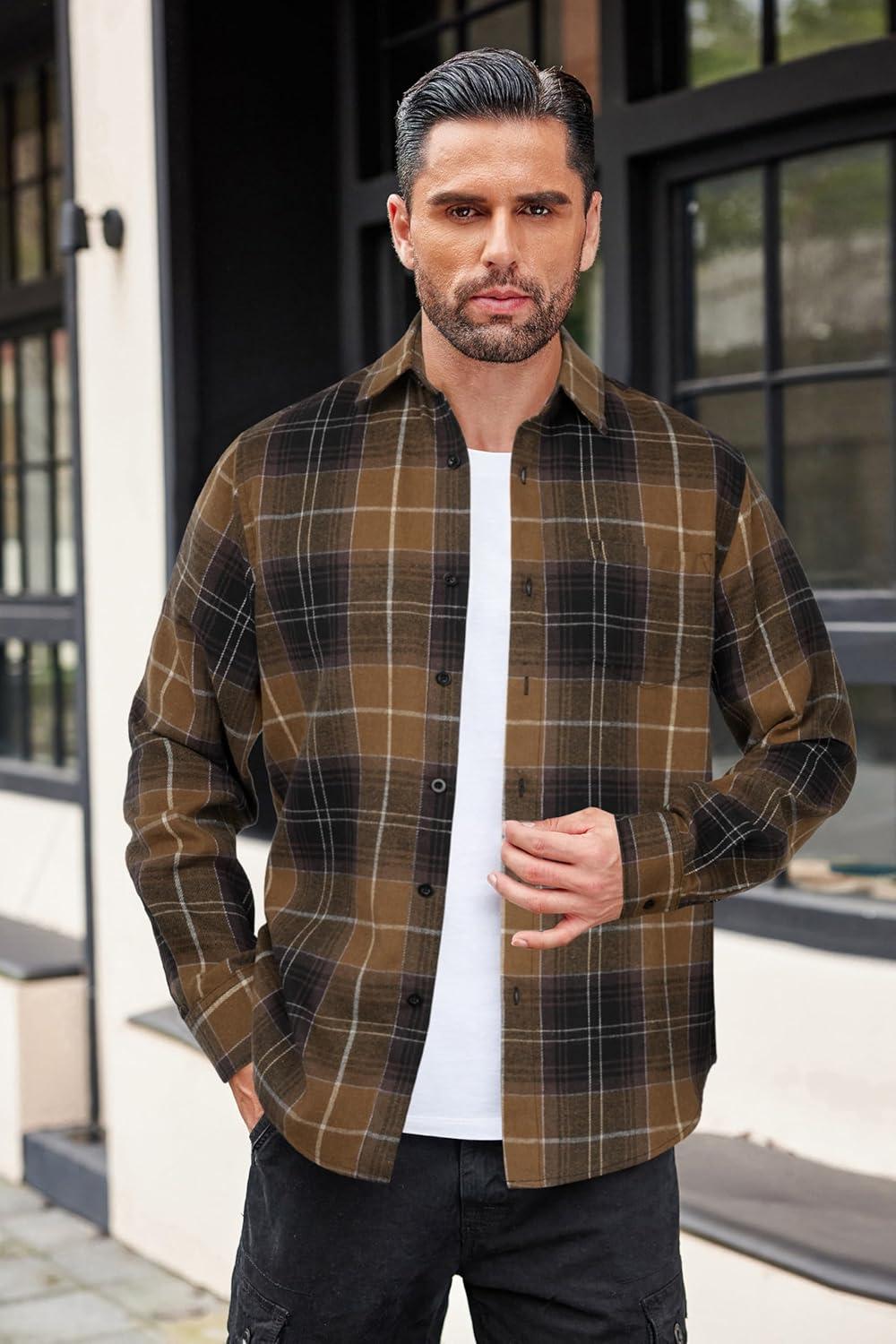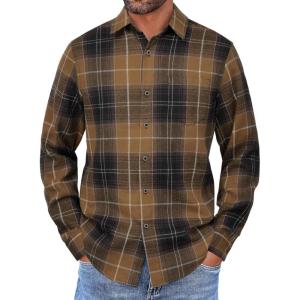 • COOFANDY Mens Flannel Shirts Long Sleeve Button Down Shirt with Pocket Casual Shirts Work Shirts for Men(Brown Plaid)