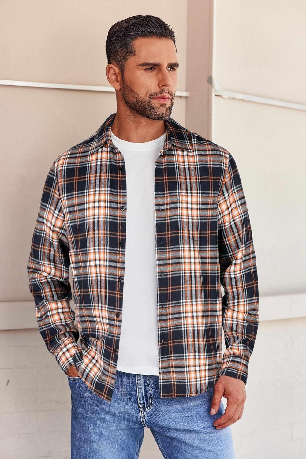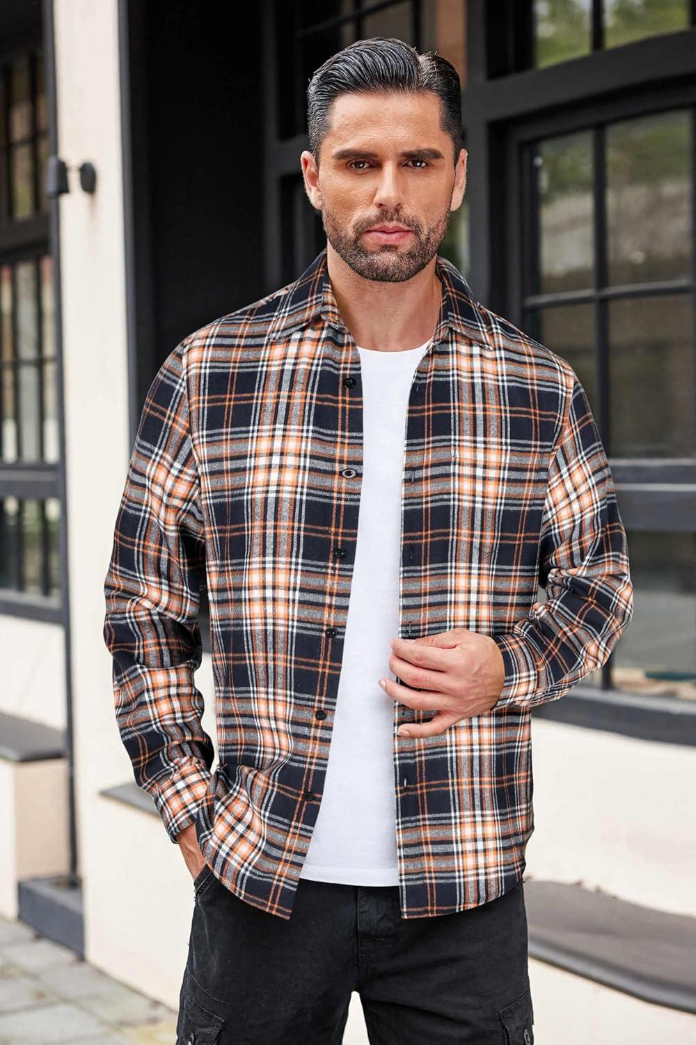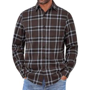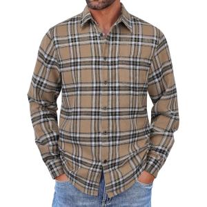 • COOFANDY Mens Flannel Shirts Long Sleeve Button Down Shirt with Pocket Casual Shirts Work Shirts for Men(Brown Plaid)