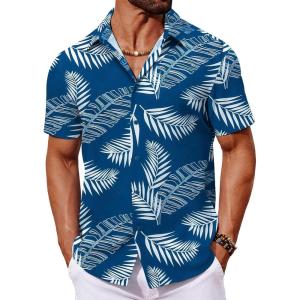 COOFANDY Mens Hawaiian Shirt Short Sleeve Button Down Shirts Tropical Floral Summer Beach Shirts(Blue Leaves)