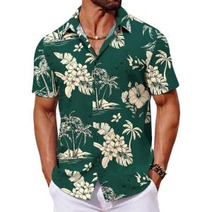 COOFANDY Mens Hawaiian Shirt Short Sleeve Button Down Shirts Tropical Floral Summer Beach Shirts(Green – Palm Tree)