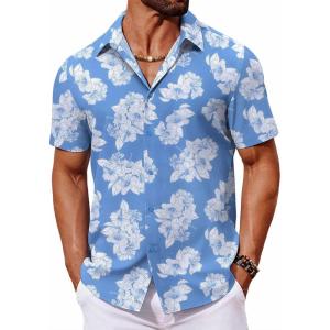 COOFANDY Mens Hawaiian Shirt Short Sleeve Button Down Shirts Tropical Floral Summer Beach Shirts(Blue)