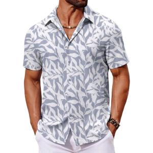 COOFANDY Mens Hawaiian Shirt Short Sleeve Button Down Shirts Tropical Floral Summer Beach Shirts(Light Gray – Leaf)