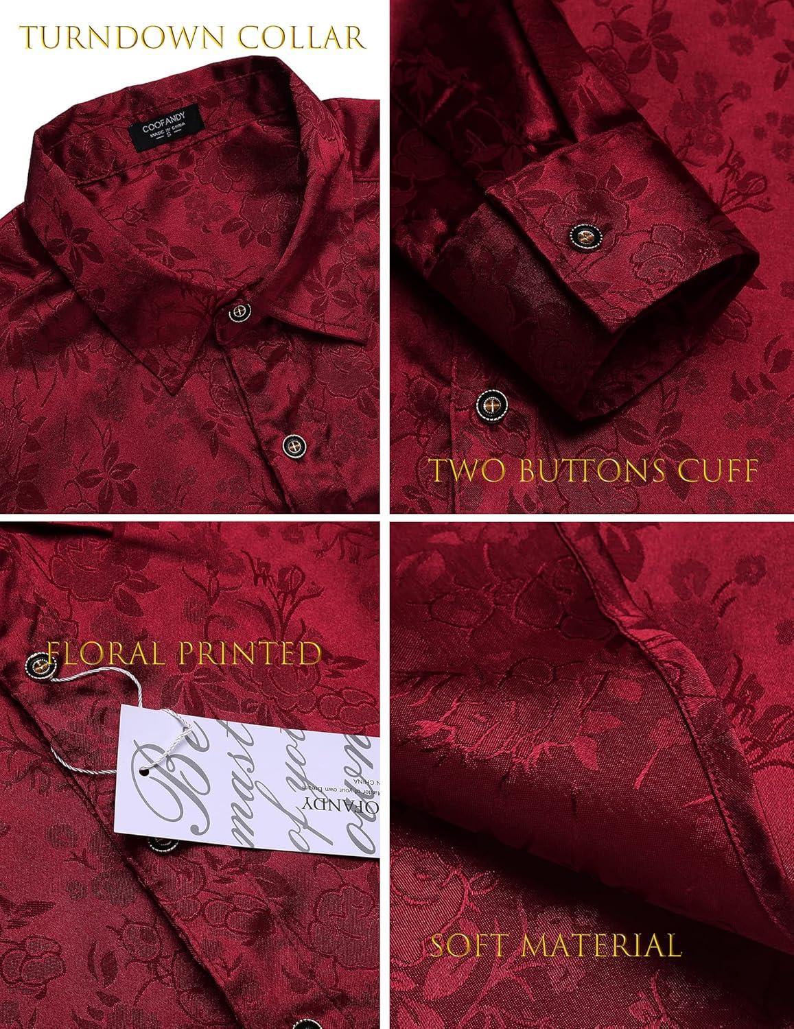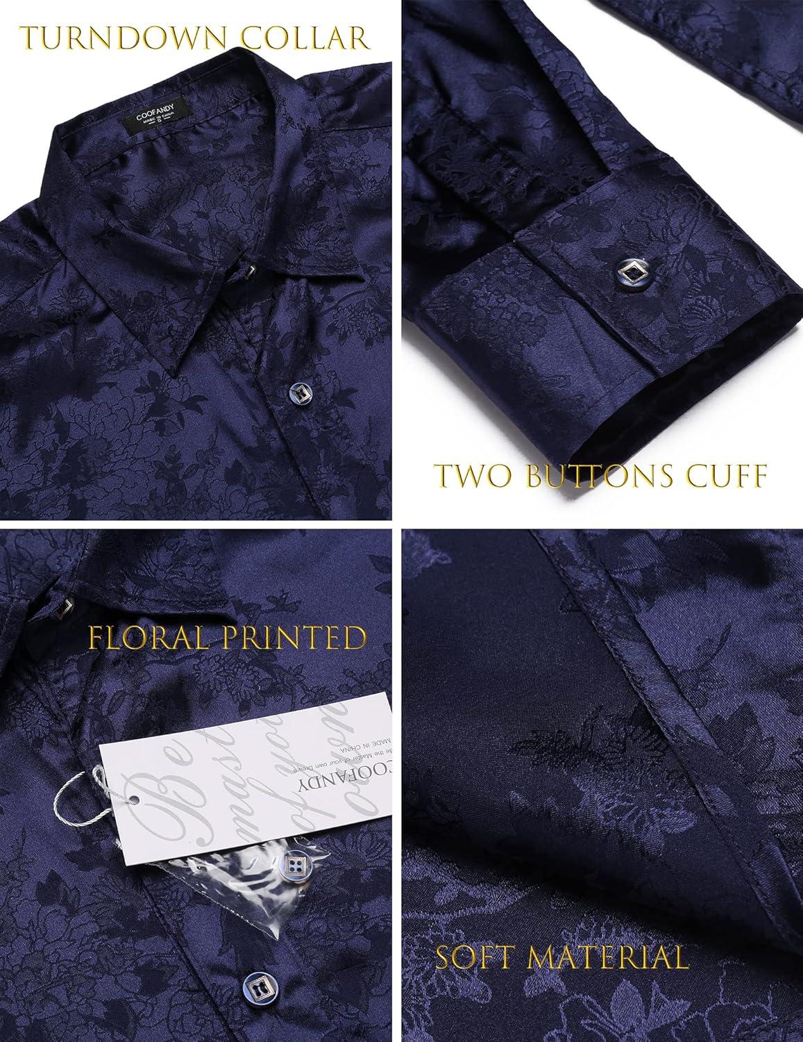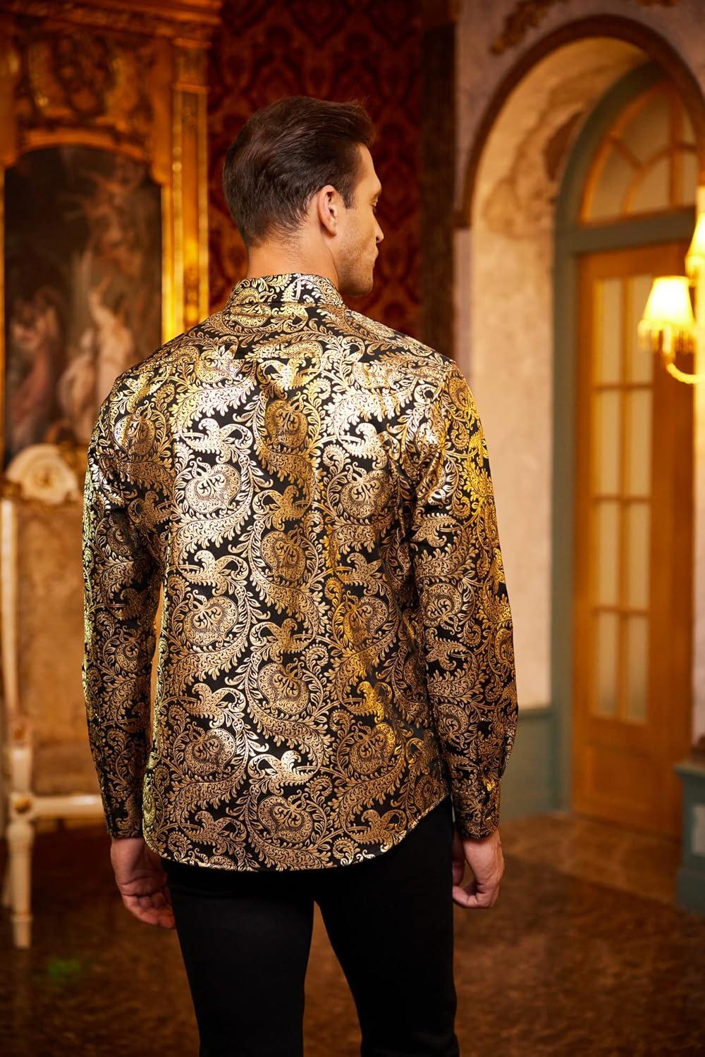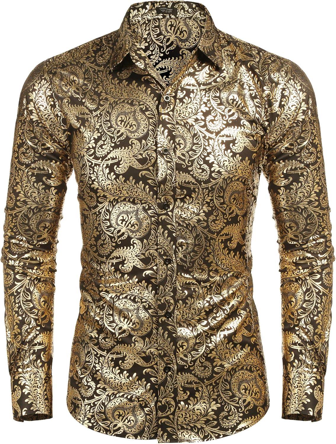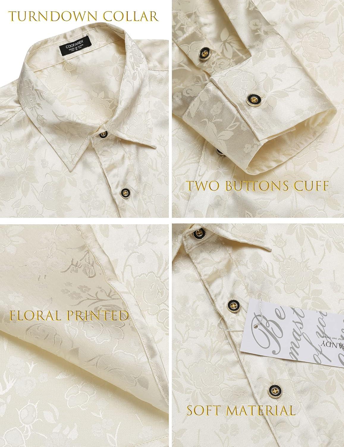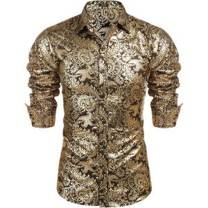 • COOFANDY Men’s Silk Satin Dress Shirts Jacquard Long Sleeve Floral Button Up Shirts Party Prom Wedding Shirt(02-gold)