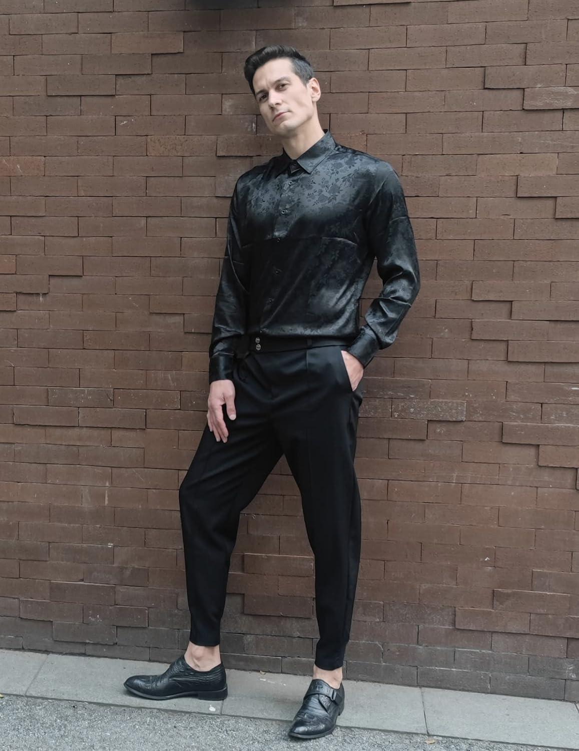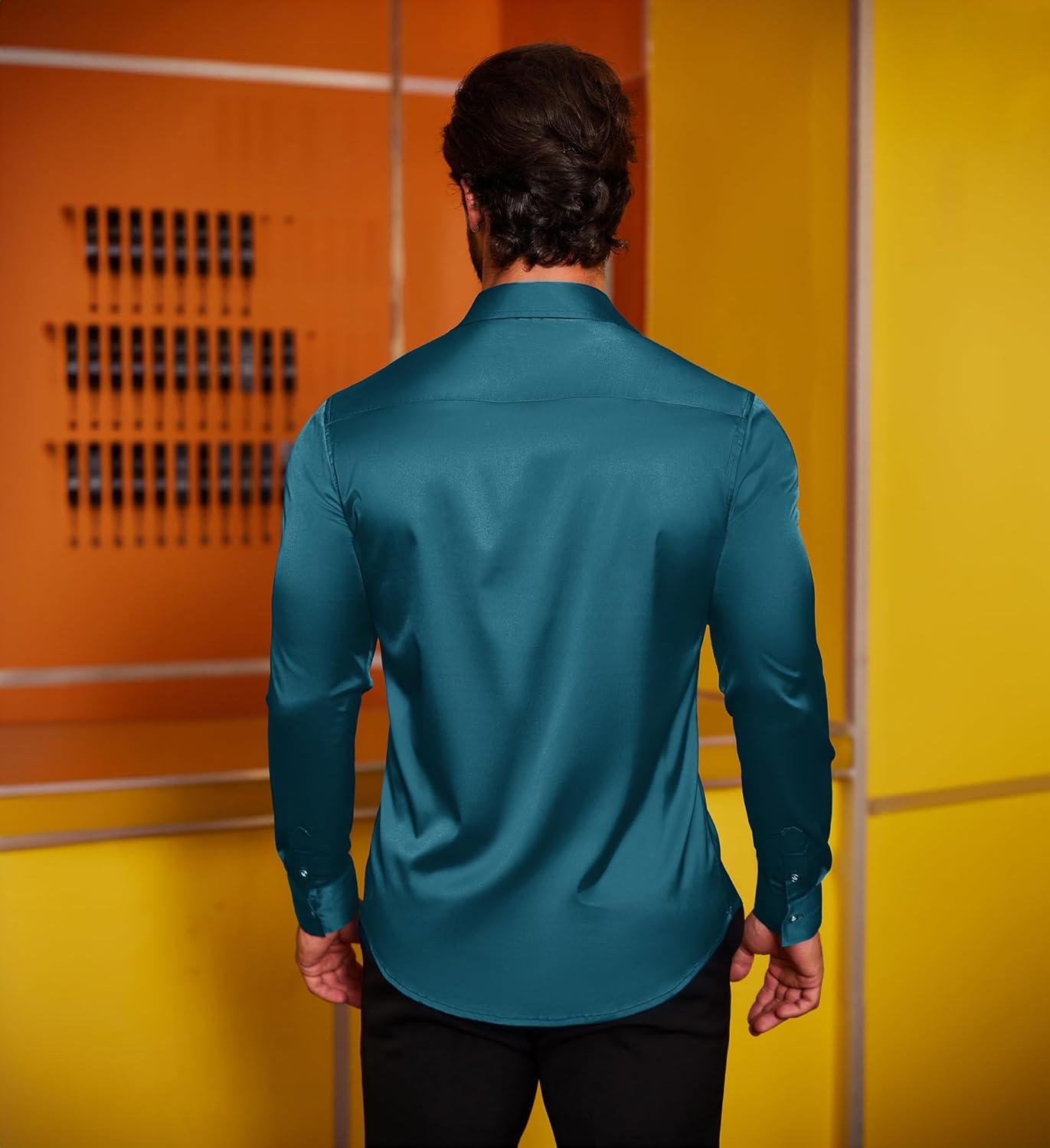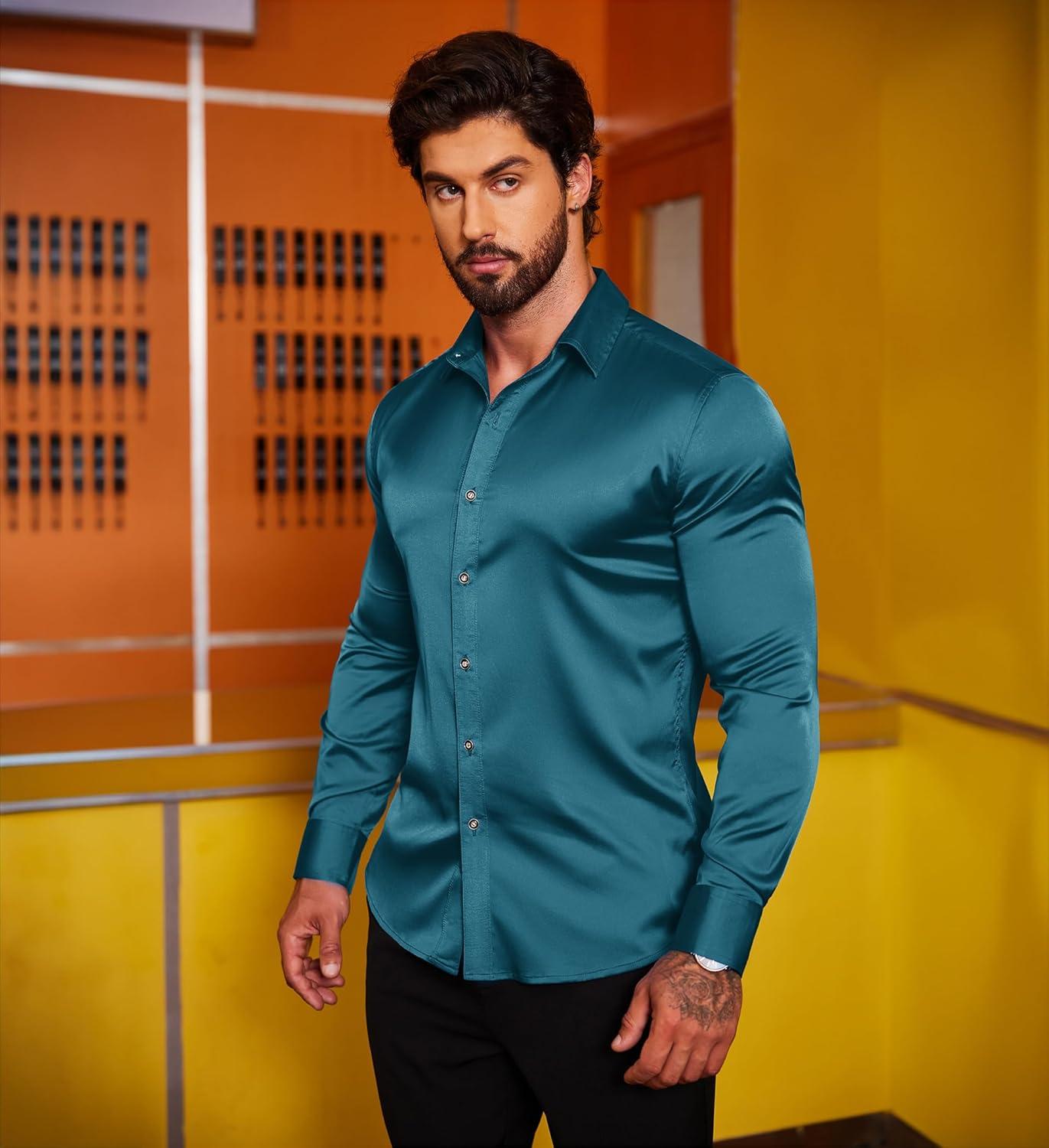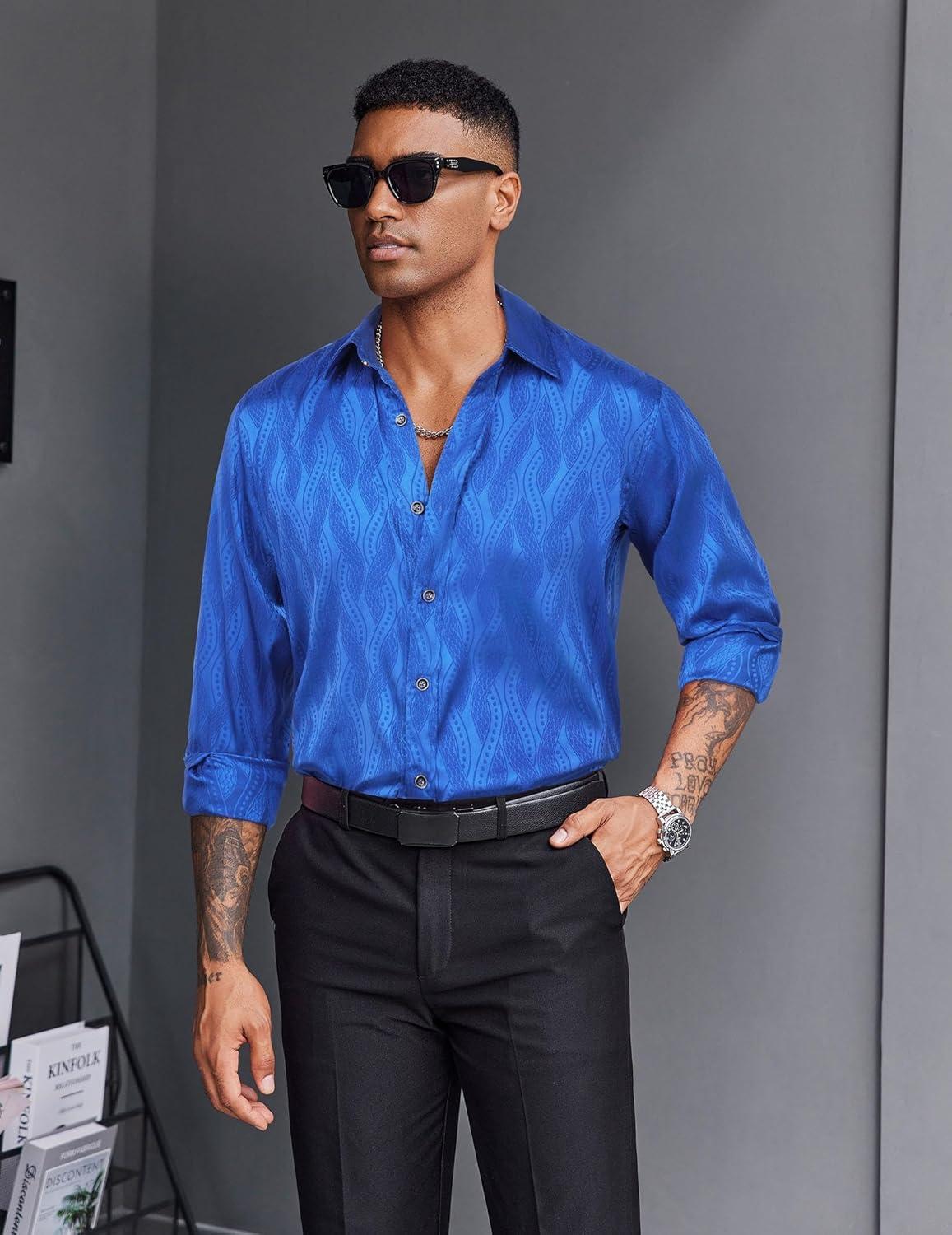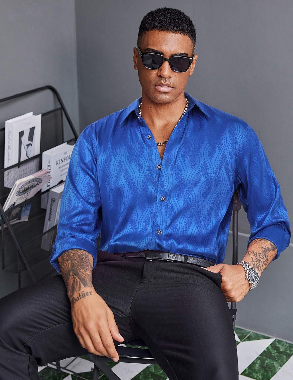 • COOFANDY Men’s Silk Satin Dress Shirts Jacquard Long Sleeve Floral Button Up Shirts Party Prom Wedding Shirt(02-gold)