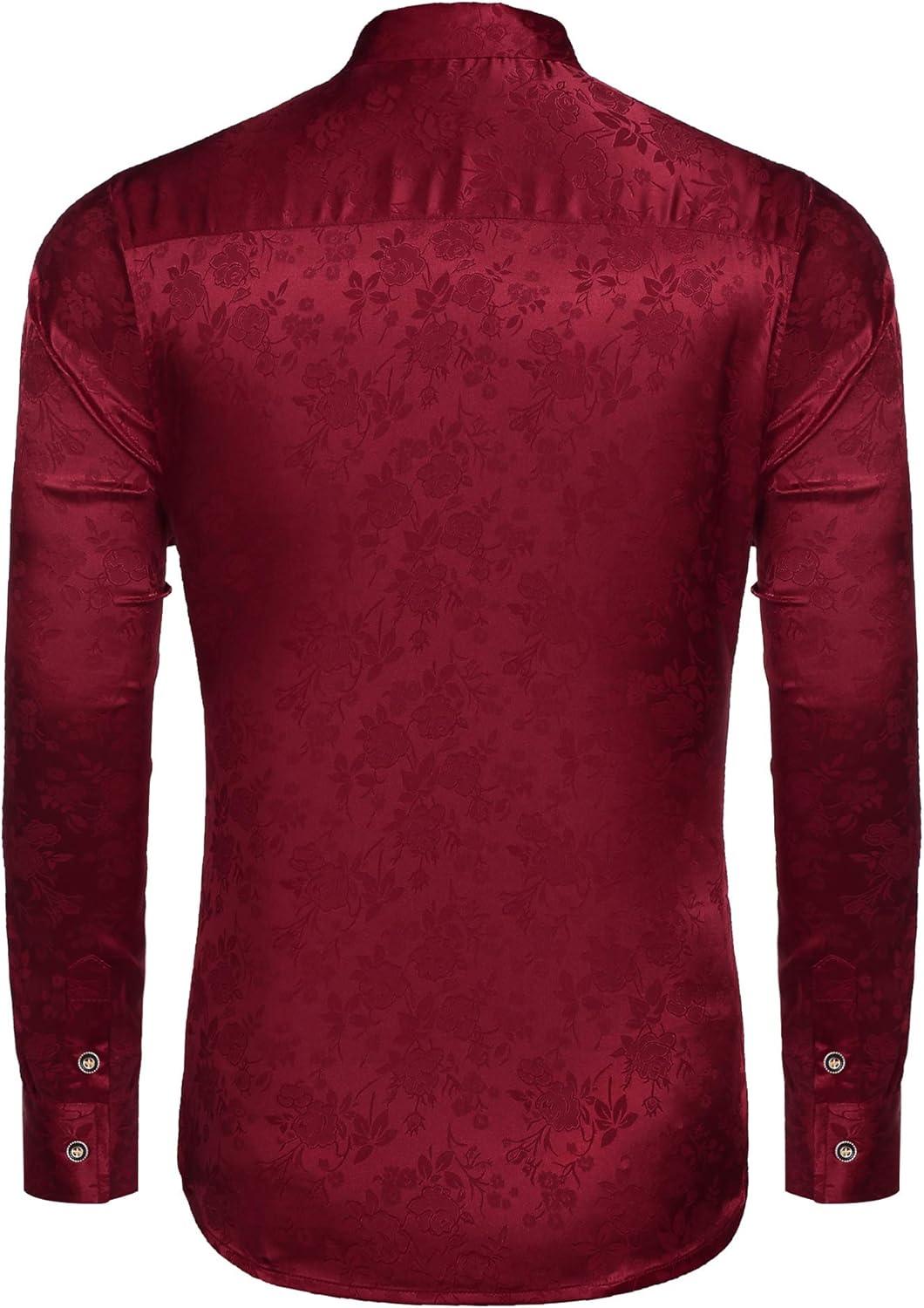COOFANDY Men’s Silk Satin Dress Shirts Jacquard Long Sleeve Floral Button Up Shirts Party Prom Wedding Shirt(02-gold)