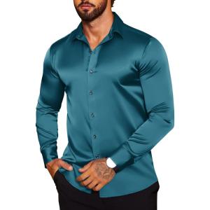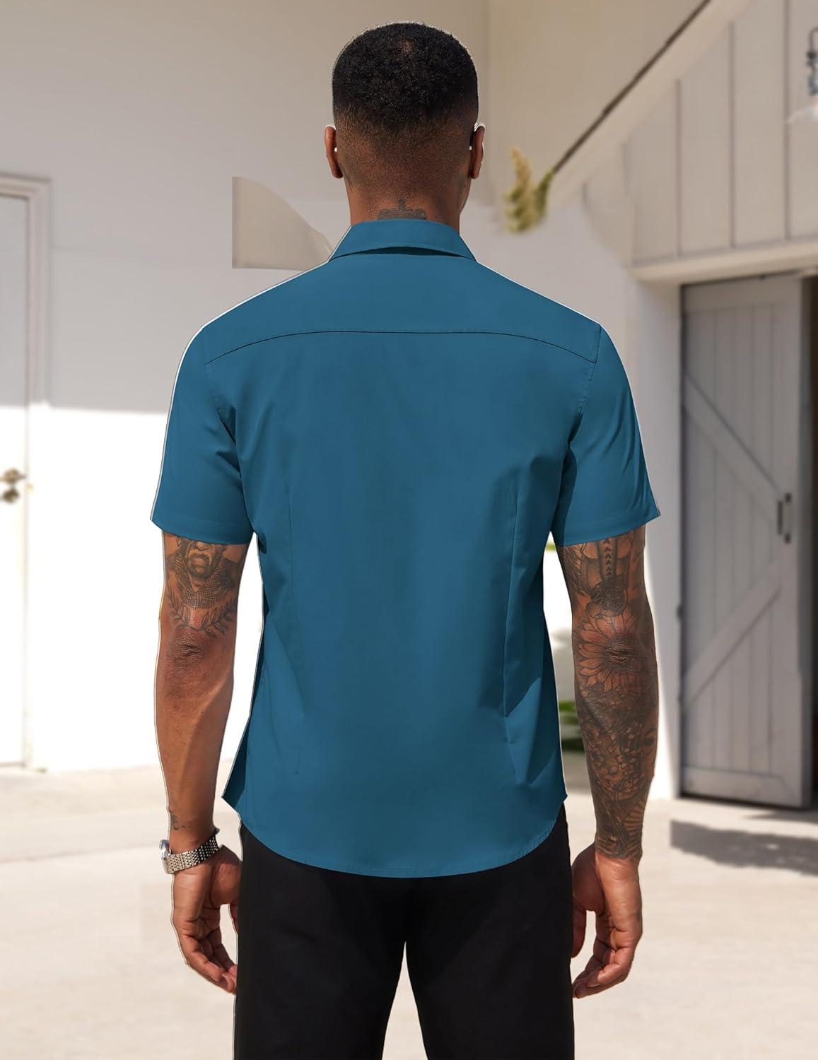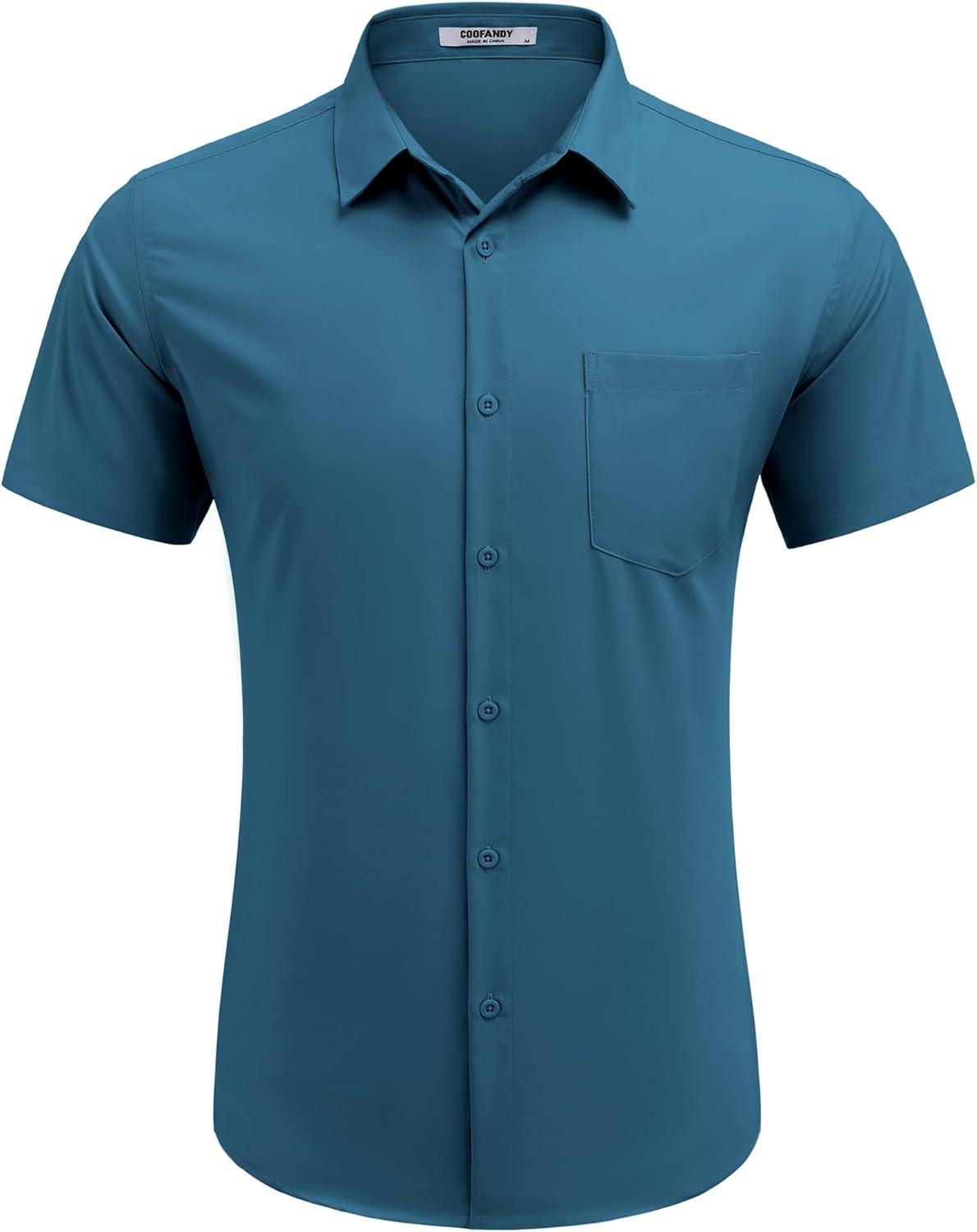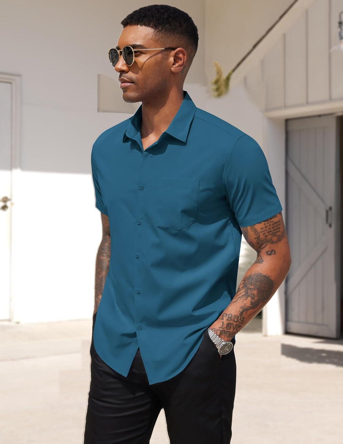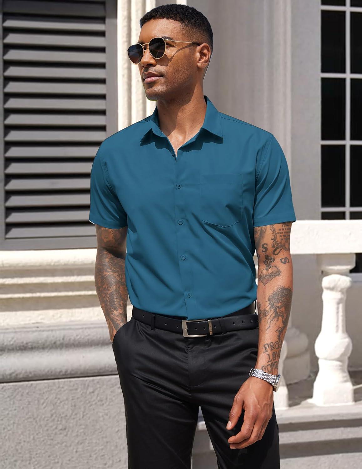 • COOFANDY Men’s Short Sleeve Casual Button Down Shirt Business Untucked Dress Shirts with Pocket(Teal)