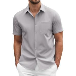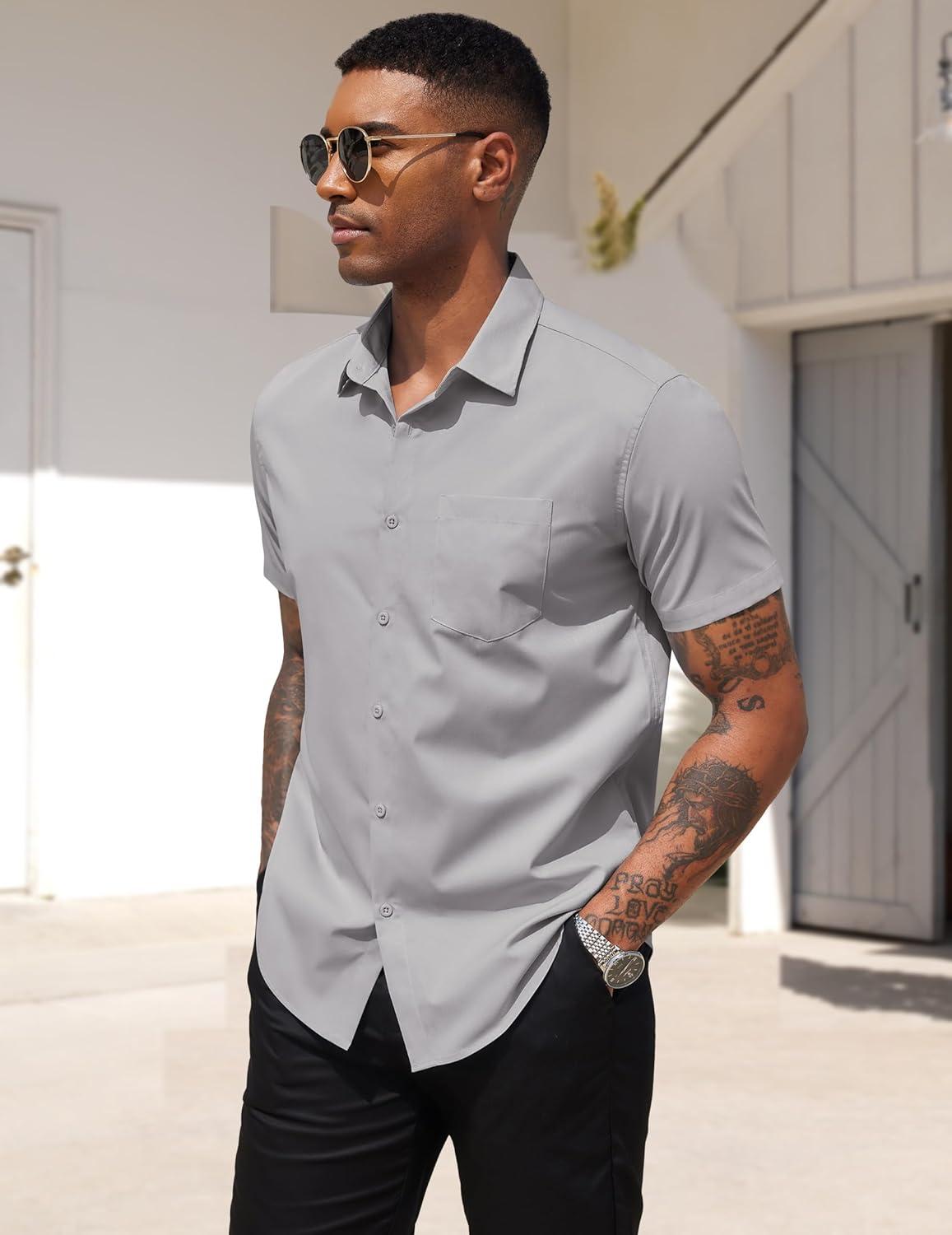• COOFANDY Men’s Short Sleeve Casual Button Down Shirt Business Untucked Dress Shirts with Pocket(Grey)