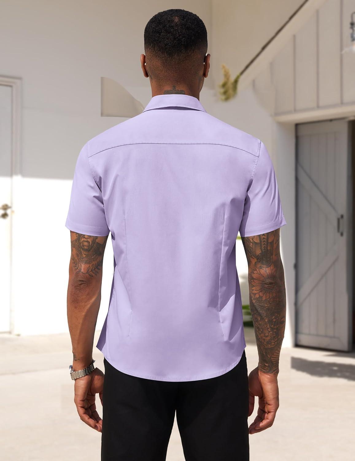 • COOFANDY Men’s Short Sleeve Casual Button Down Shirt Business Untucked Dress Shirts with Pocket(Purple)