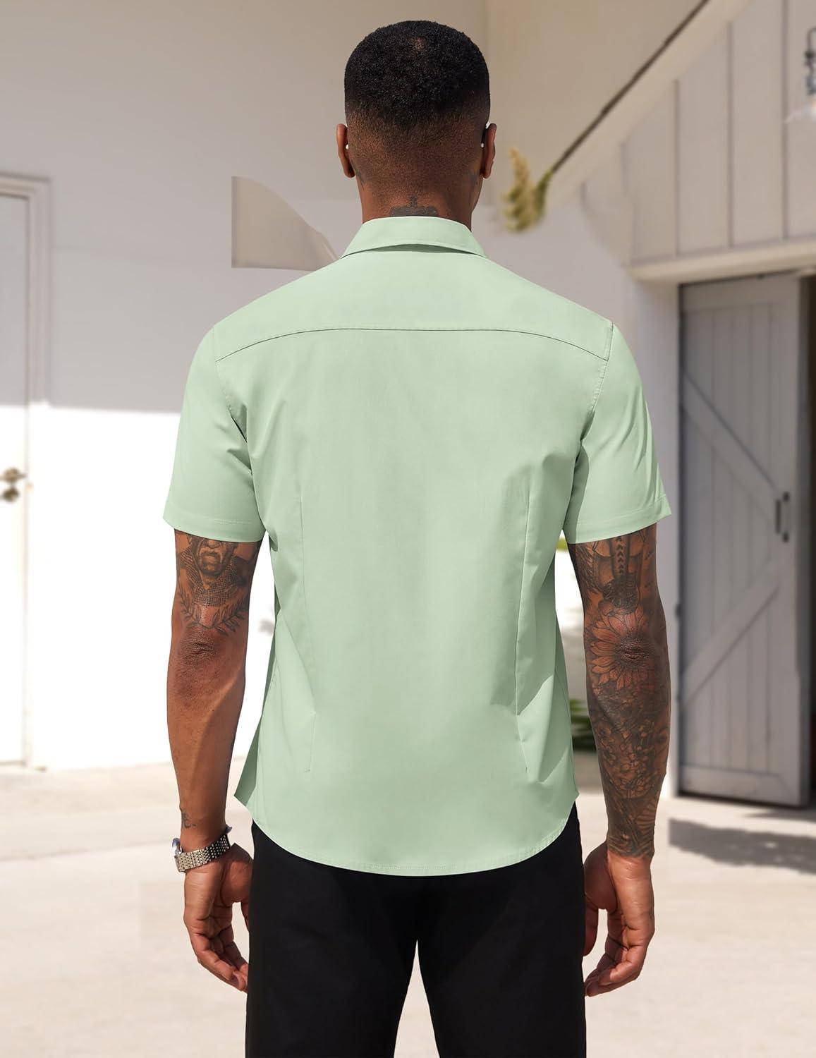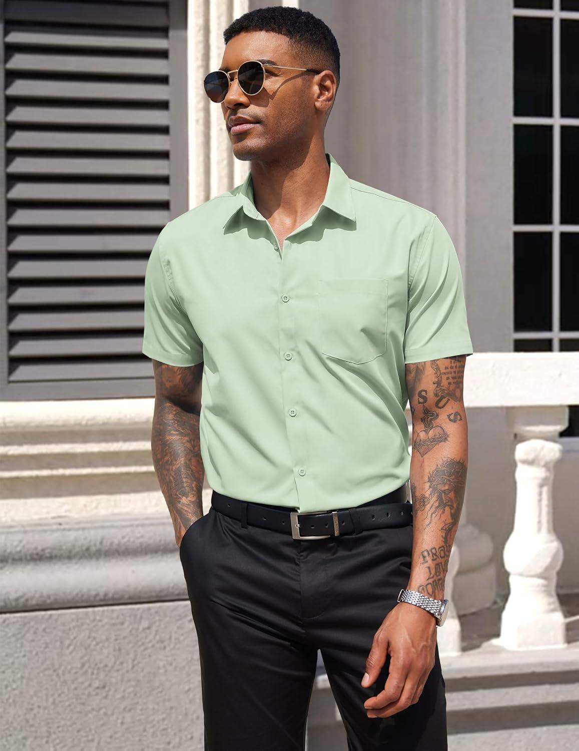• COOFANDY Men’s Short Sleeve Casual Button Down Shirt Business Untucked Dress Shirts with Pocket(Sage Green)