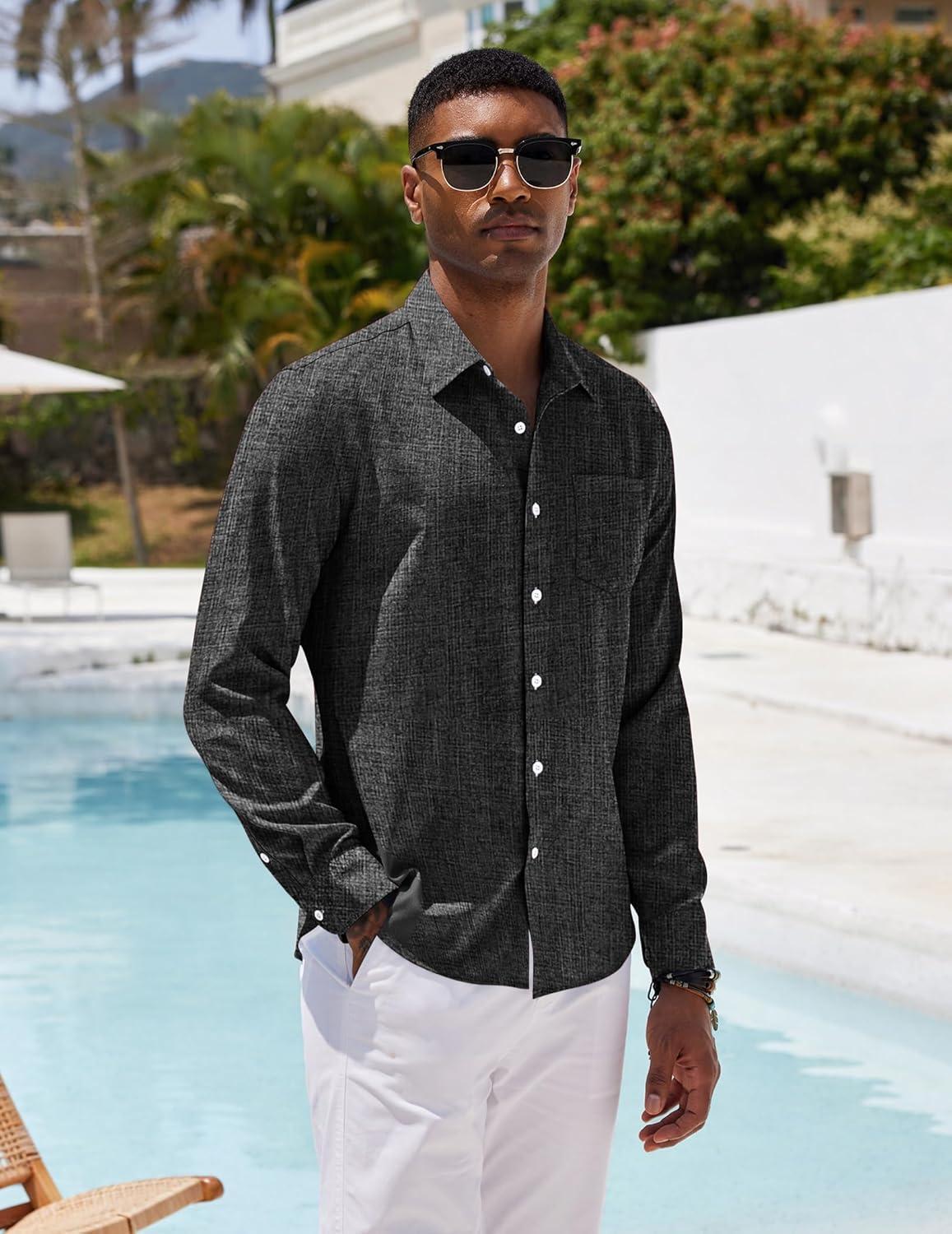 COOFANDY Men’s Western Cowboy Shirt Embroidered Long Sleeve Slim Fit Casual Cotton Button Down Hippie Shirts with Pockets(Black& Dark Brown)