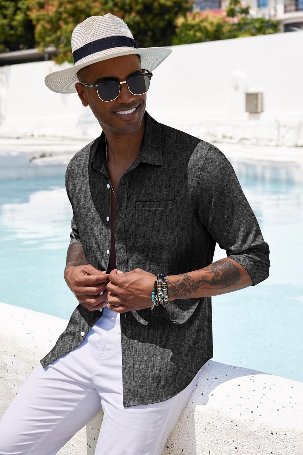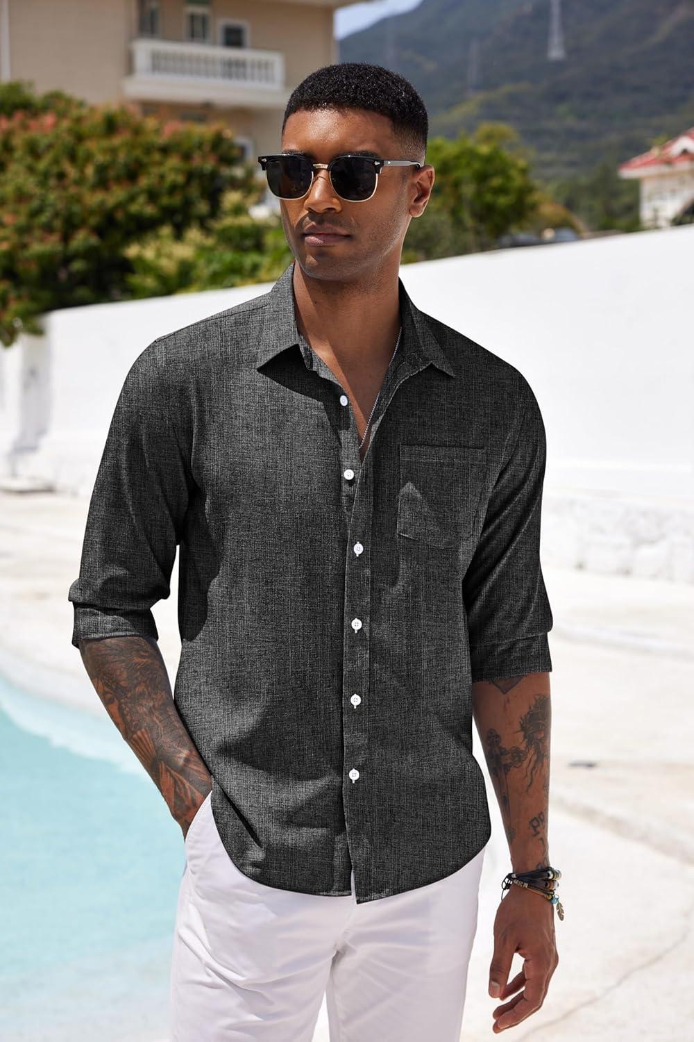 COOFANDY Men’s Western Cowboy Shirt Embroidered Long Sleeve Slim Fit Casual Cotton Button Down Hippie Shirts with Pockets(Black)