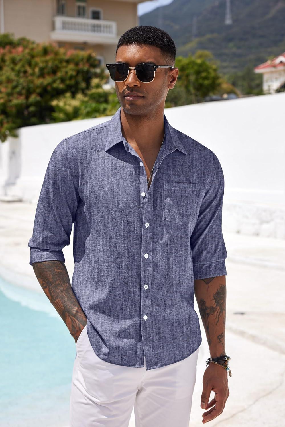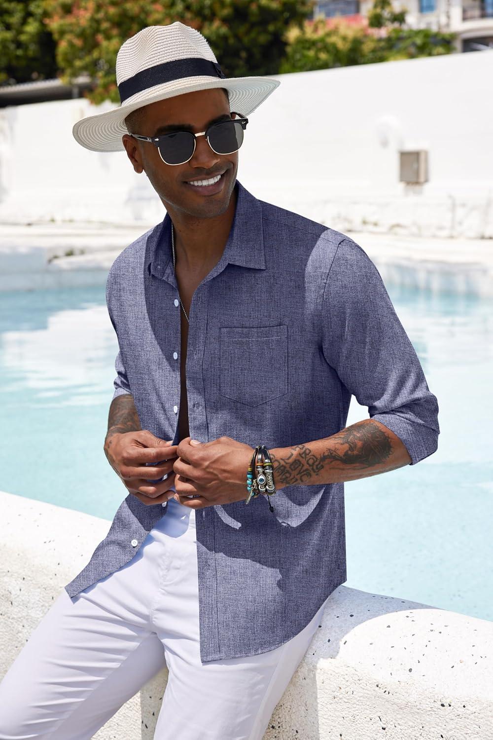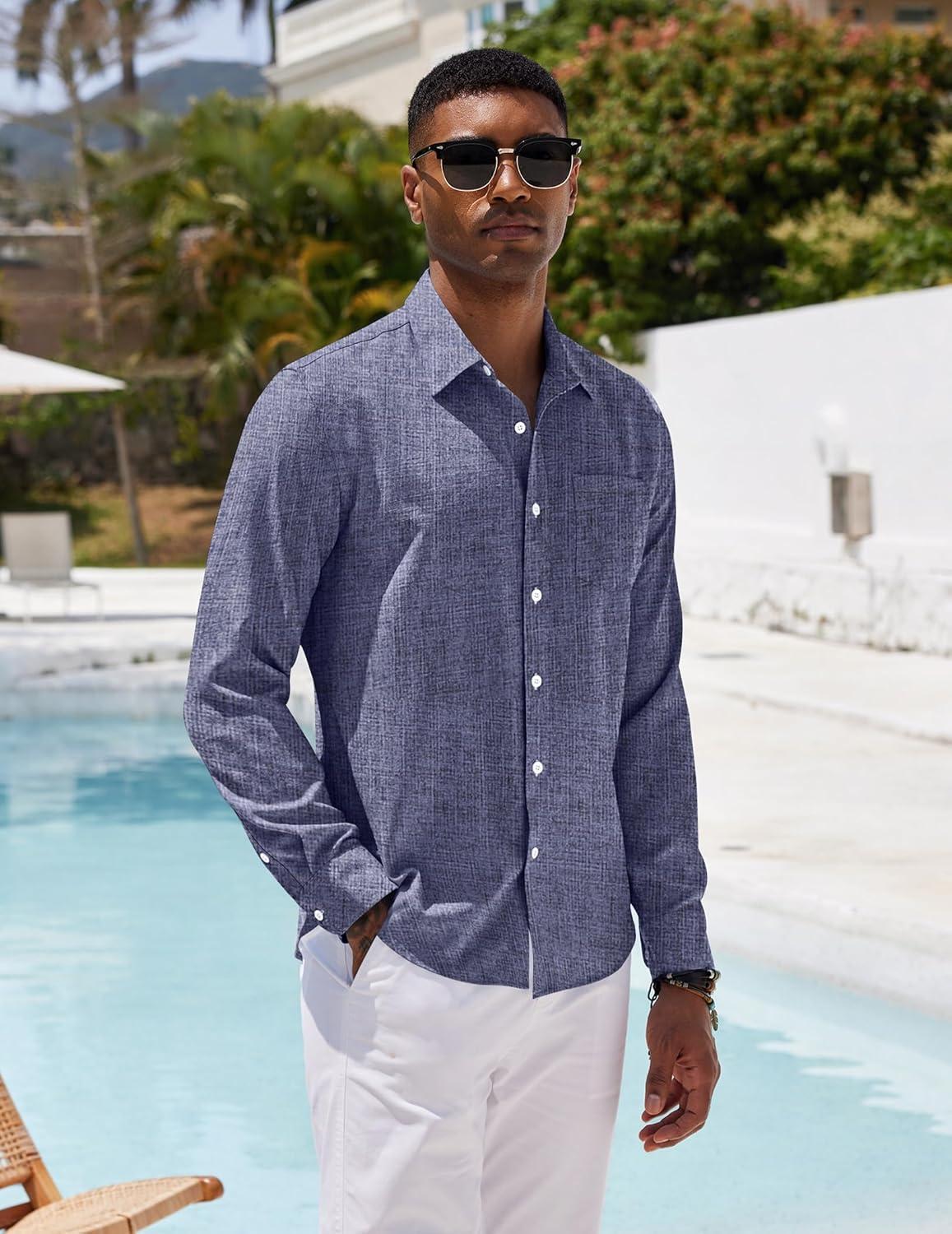 COOFANDY Men’s Western Cowboy Shirt Embroidered Long Sleeve Slim Fit Casual Cotton Button Down Hippie Shirts with Pockets(Blue)