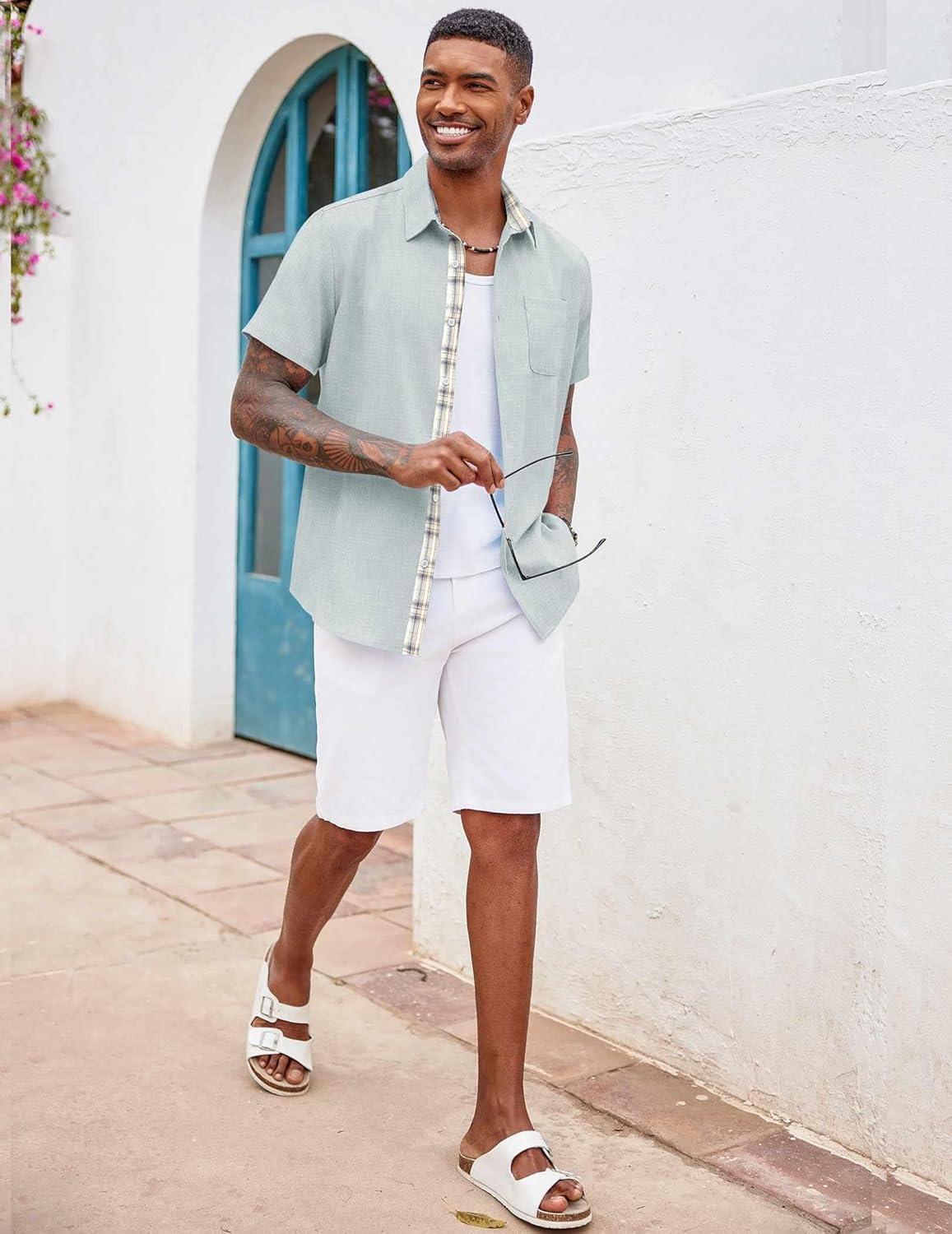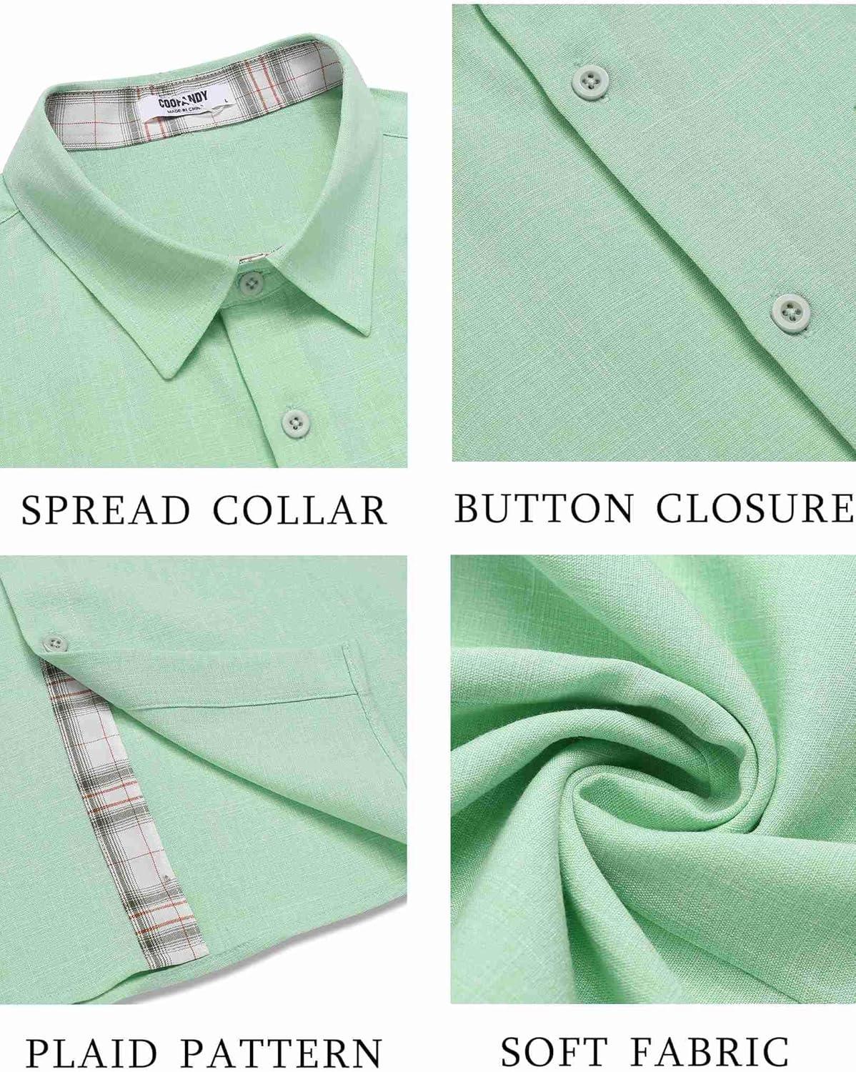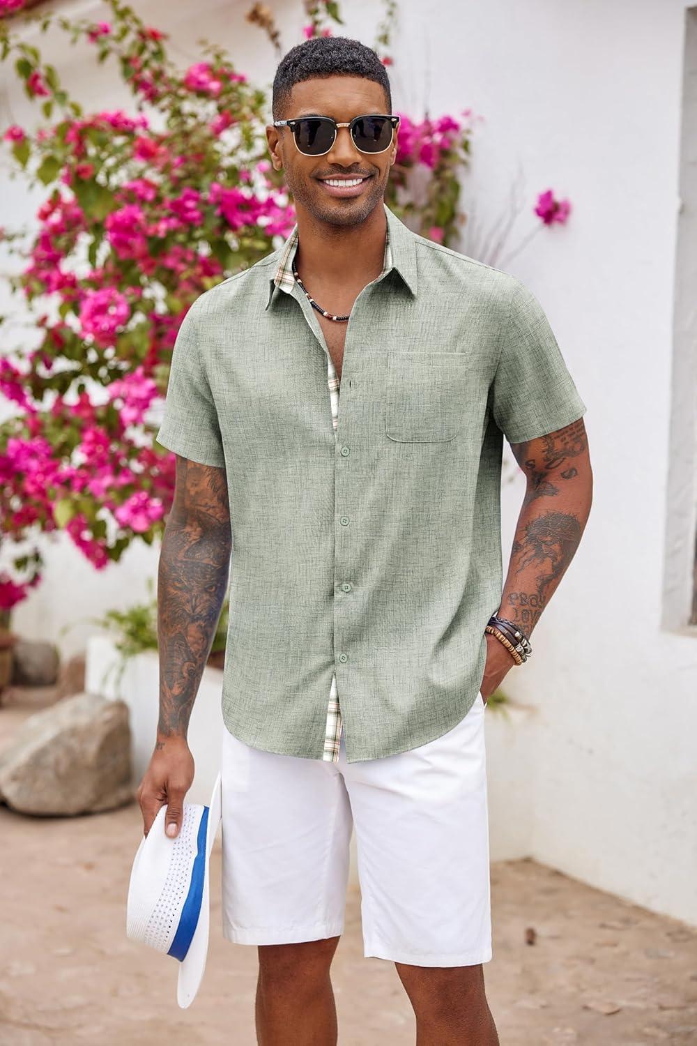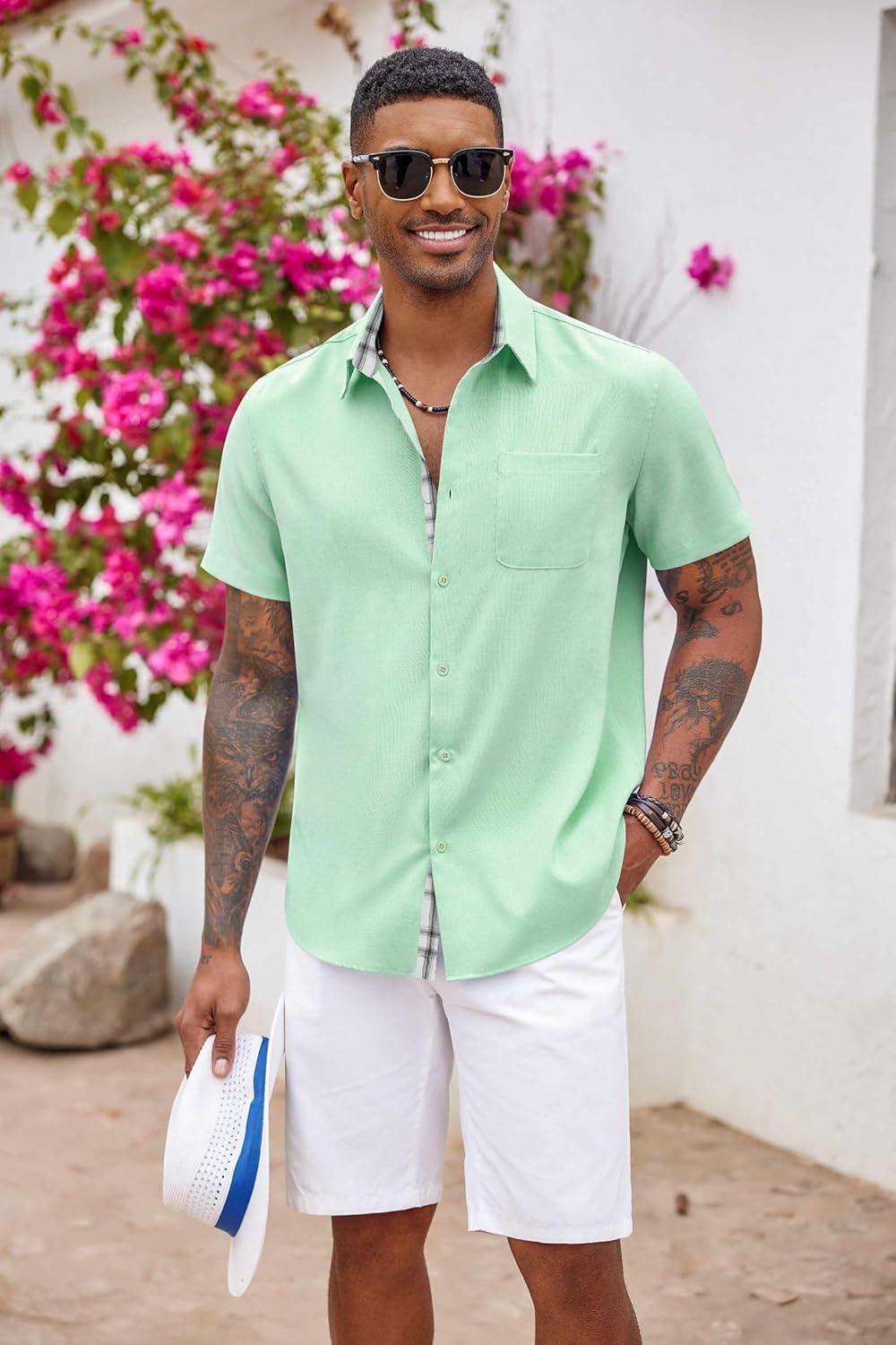 COOFANDY Men’s Button Down Shirts Short Sleeve Casual Shirts Summer Beach Shirts Vacation Wedding Shirts with Pocket(Light Green)