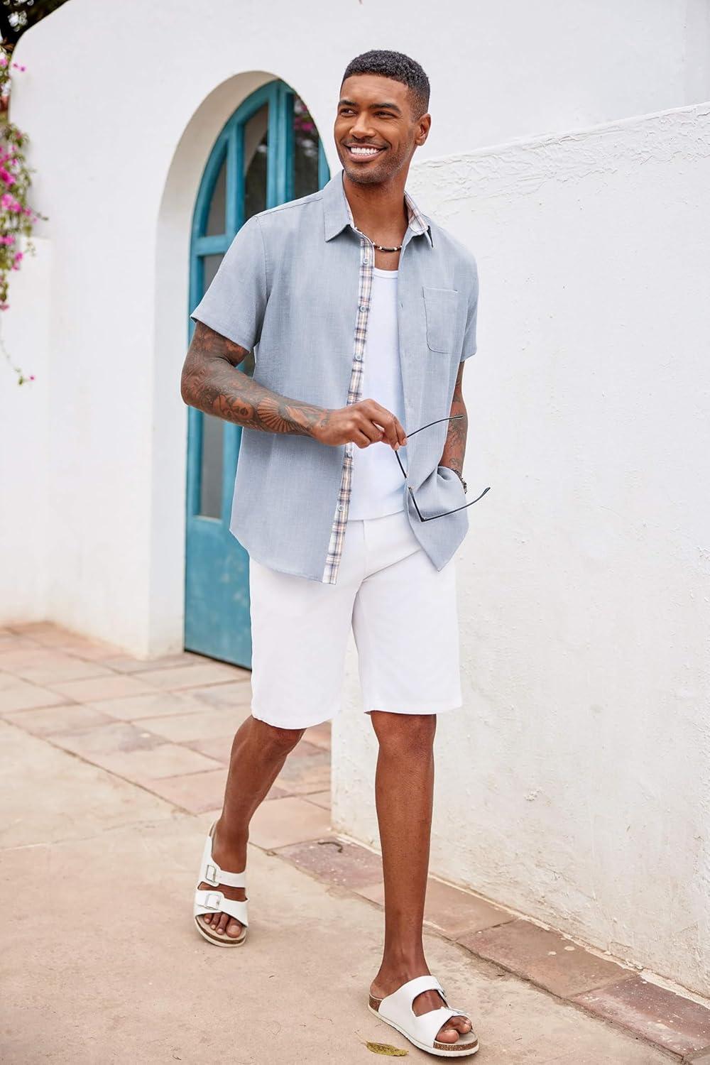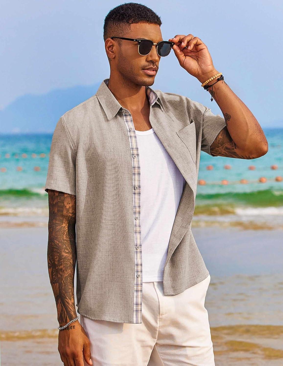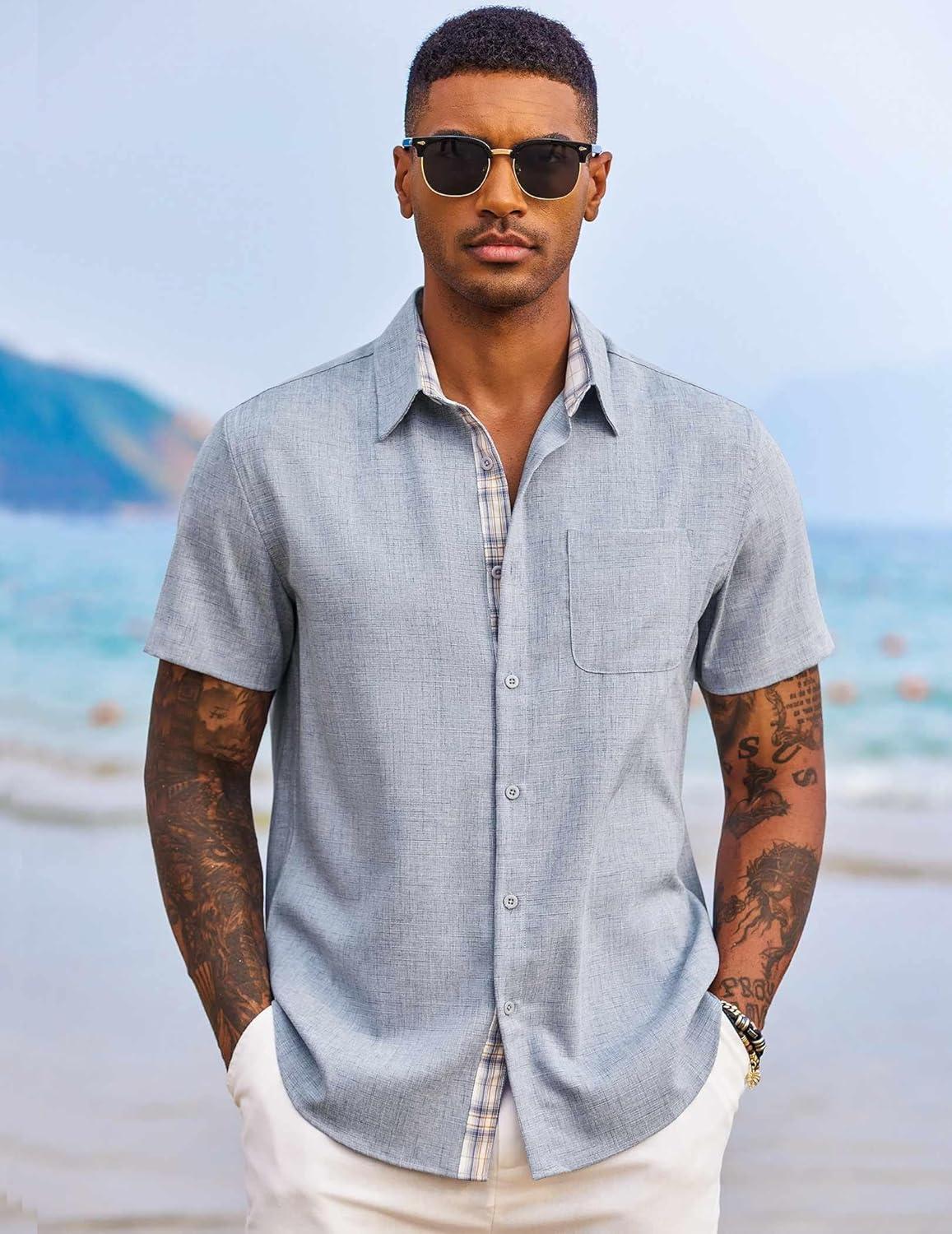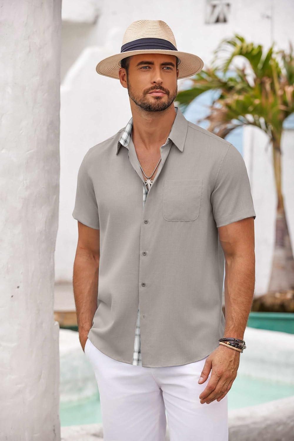COOFANDY Men’s Button Down Shirts Short Sleeve Casual Shirts Summer Beach Shirts Vacation Wedding Shirts with Pocket(Light Grey)