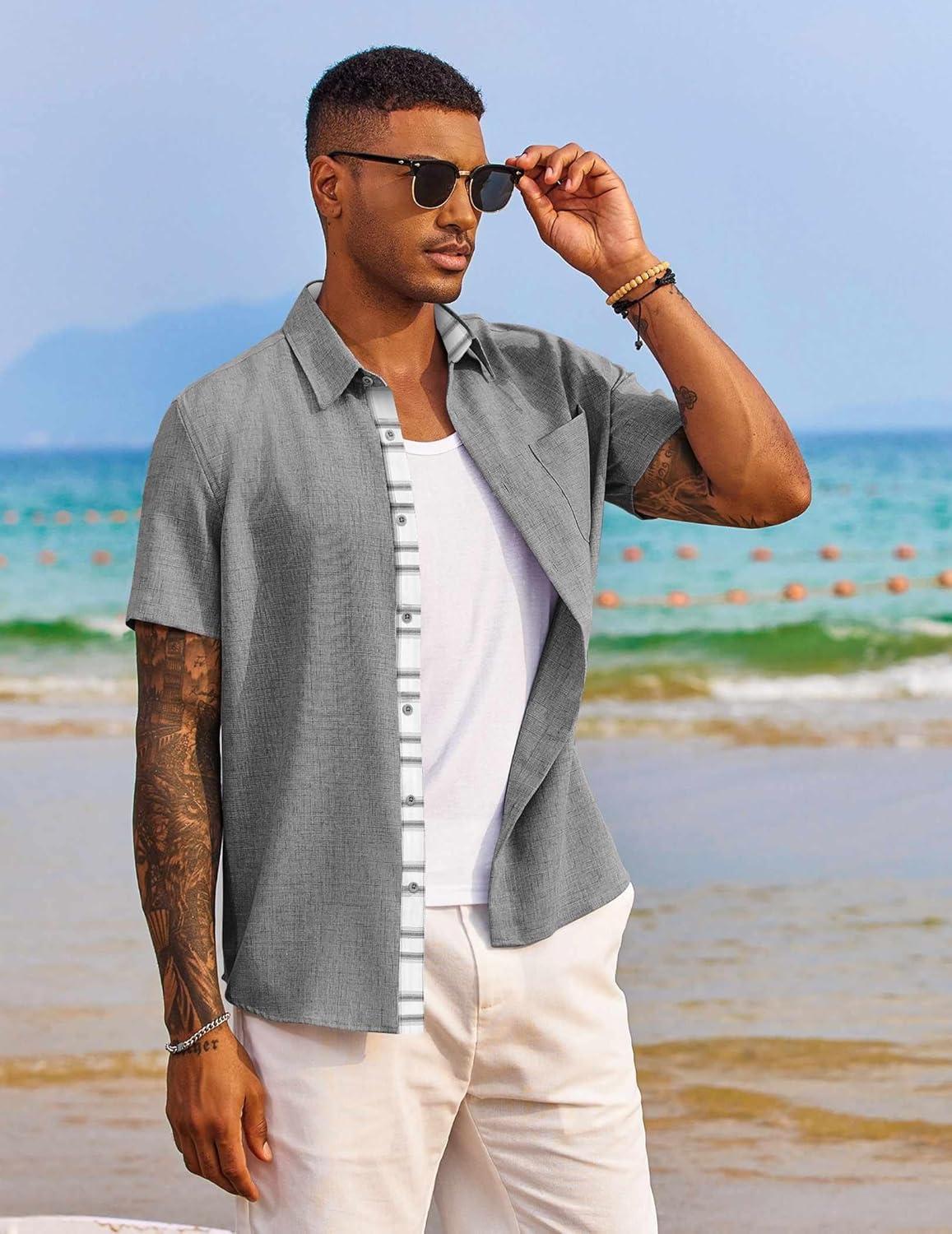 COOFANDY Men’s Button Down Shirts Short Sleeve Casual Shirts Summer Beach Shirts Vacation Wedding Shirts with Pocket(Grey)