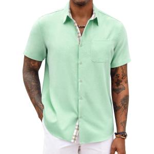 COOFANDY Men’s Button Down Shirts Short Sleeve Casual Shirts Summer Beach Shirts Vacation Wedding Shirts with Pocket(Ice Green)
