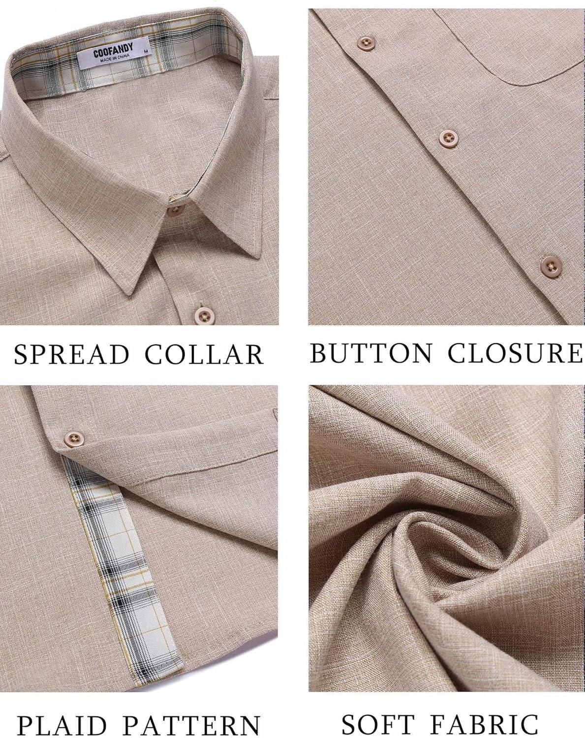 COOFANDY Men’s Button Down Shirts Short Sleeve Casual Shirts Summer Beach Shirts Vacation Wedding Shirts with Pocket(Khaki)