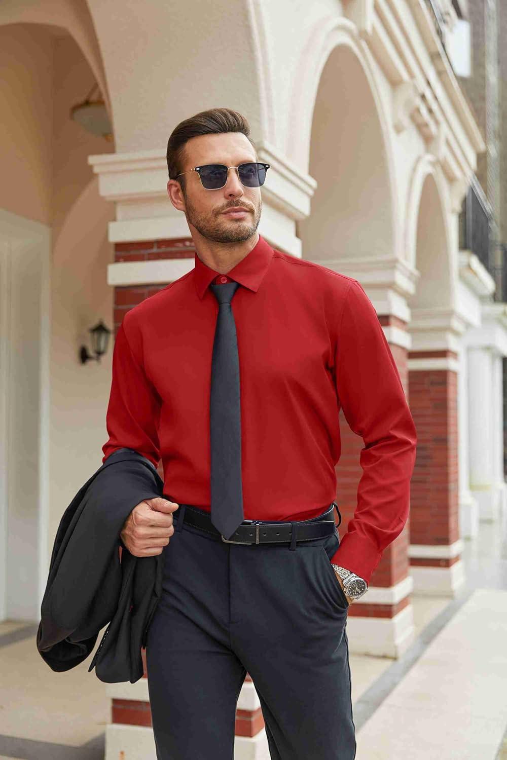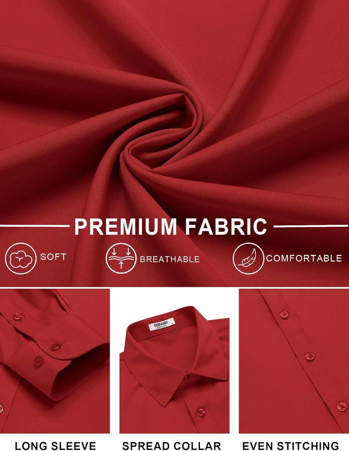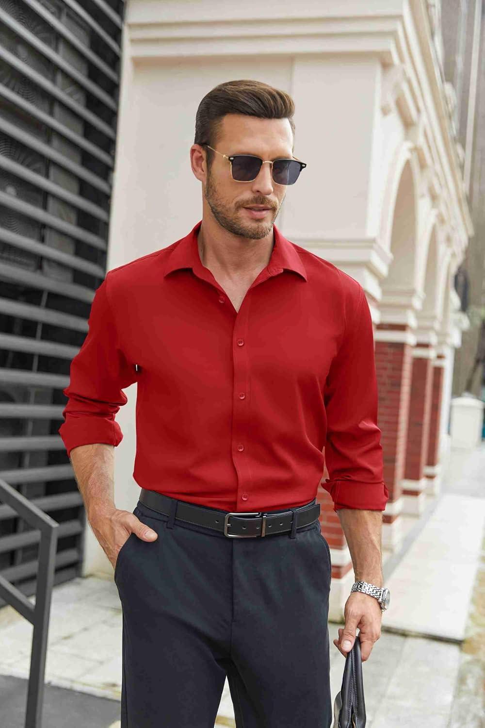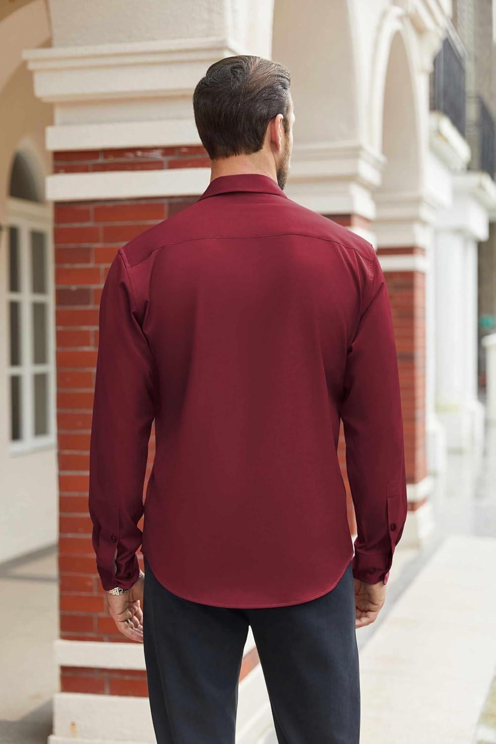 COOFANDY Mens Stretch Dress Shirts Long Sleeve Button Down Shirt Regular Fit Formal Business Shirts(Deep Red)