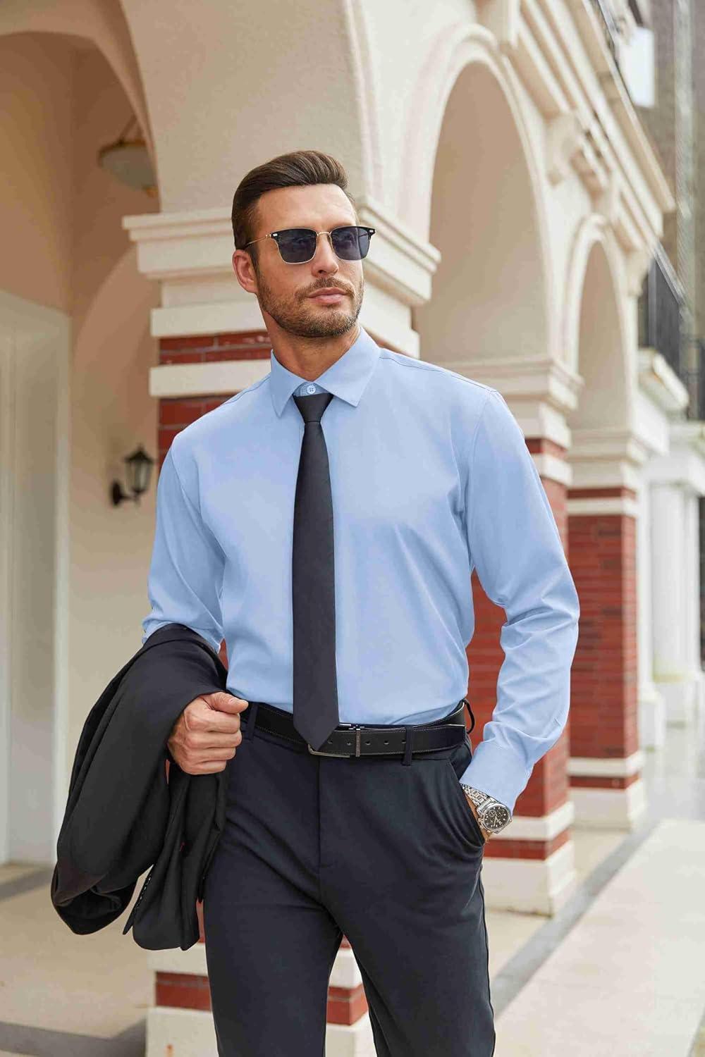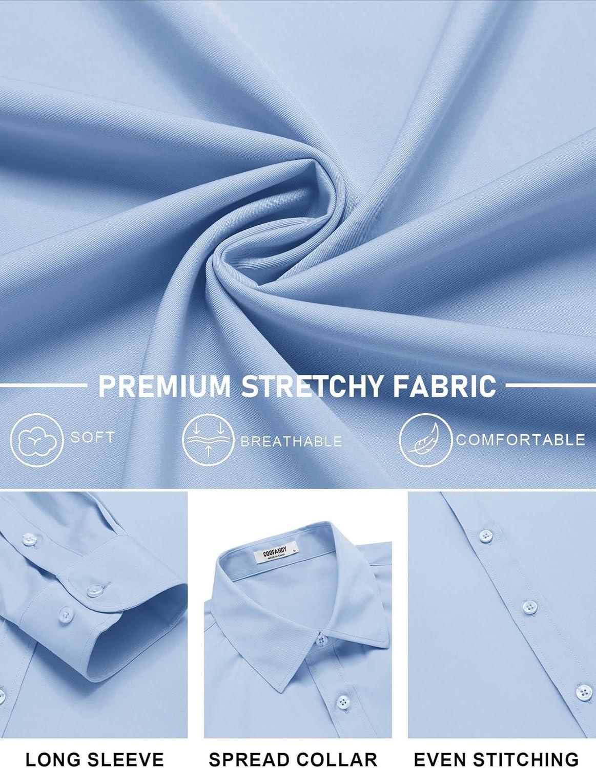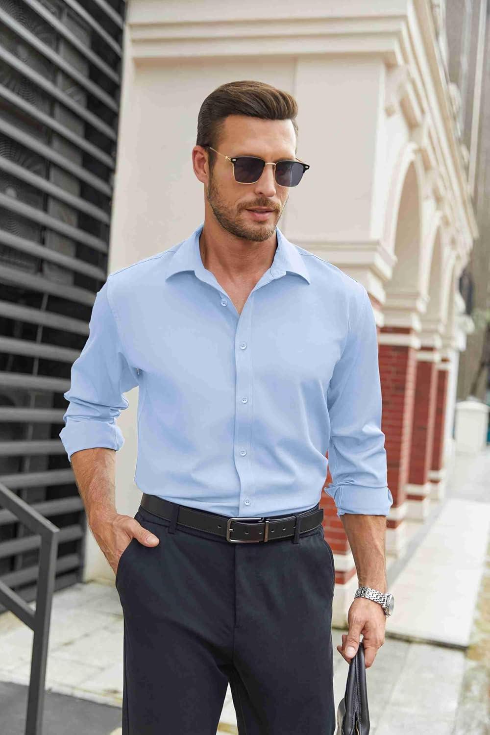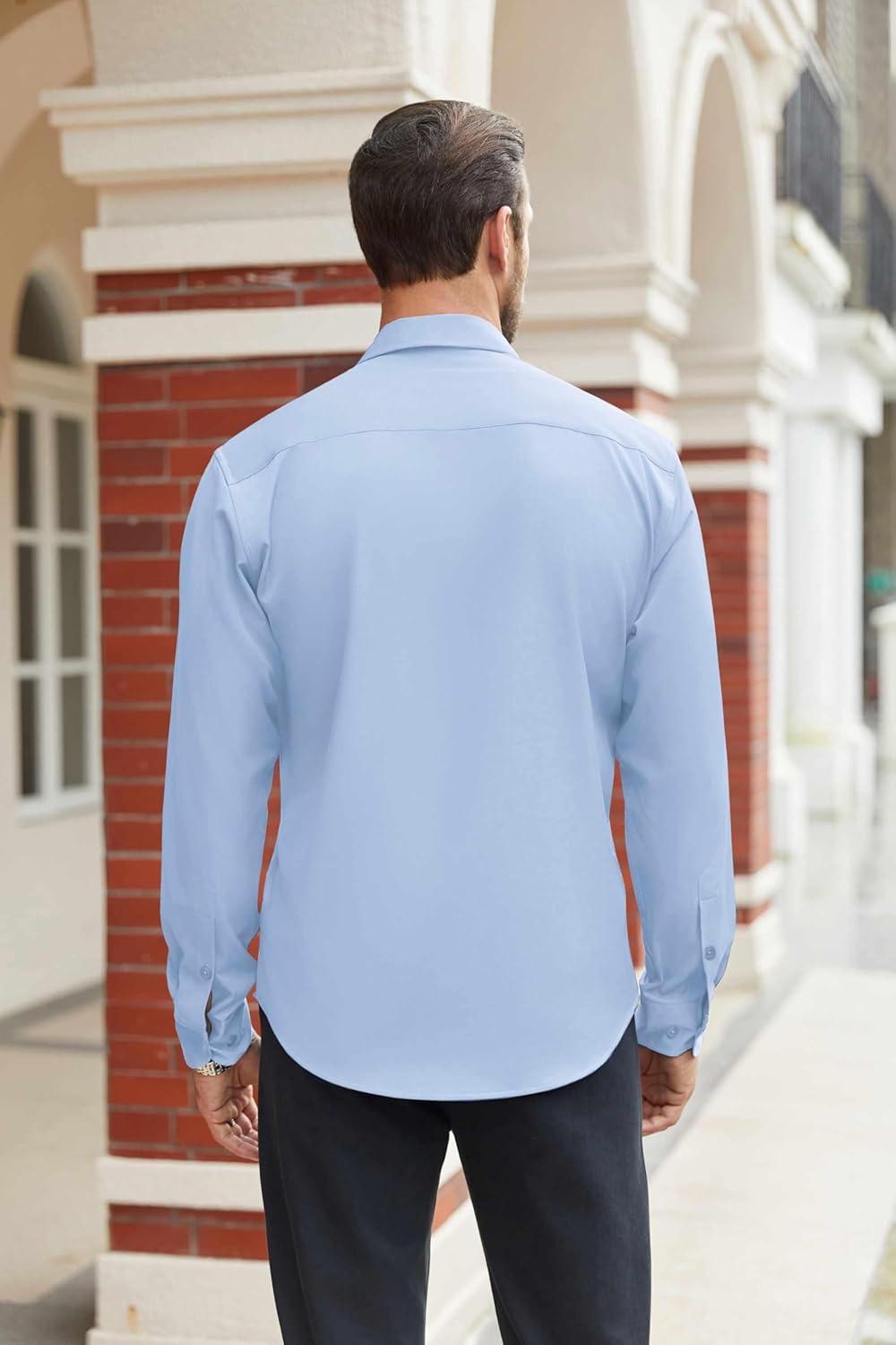 COOFANDY Mens Stretch Dress Shirts Long Sleeve Button Down Shirt Regular Fit Formal Business Shirts(Light Blue)