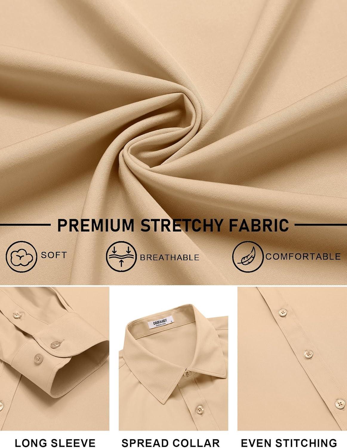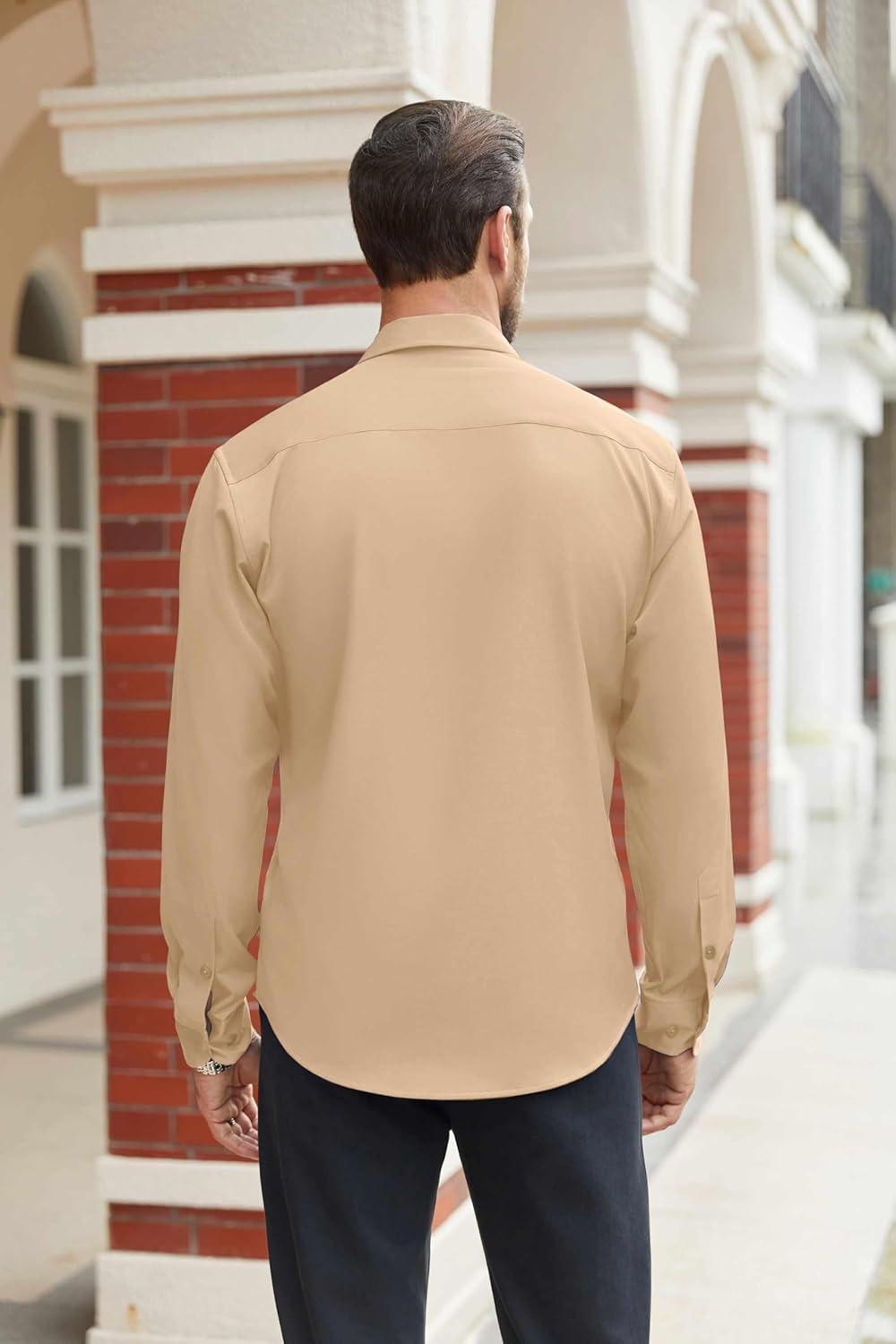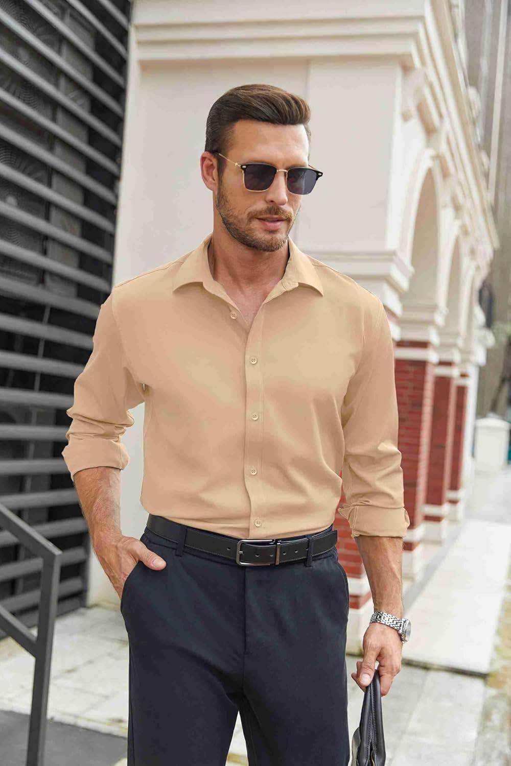COOFANDY Mens Stretch Dress Shirts Long Sleeve Button Down Shirt Regular Fit Formal Business Shirts(Light Khaki)