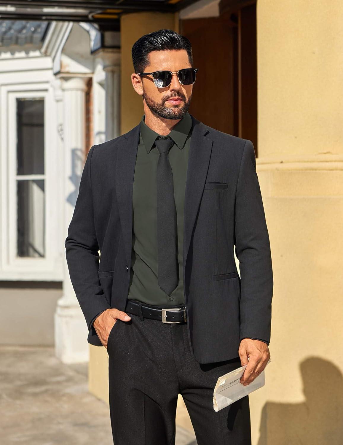 COOFANDY Mens Stretch Dress Shirts Long Sleeve Button Down Shirt Regular Fit Formal Business Shirts(Olive Green)