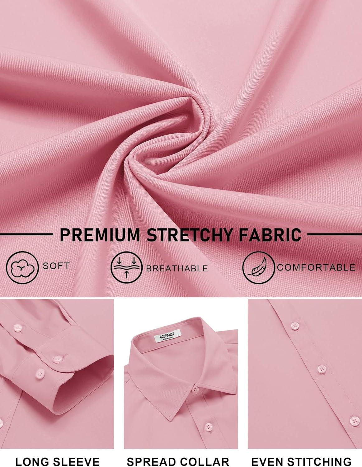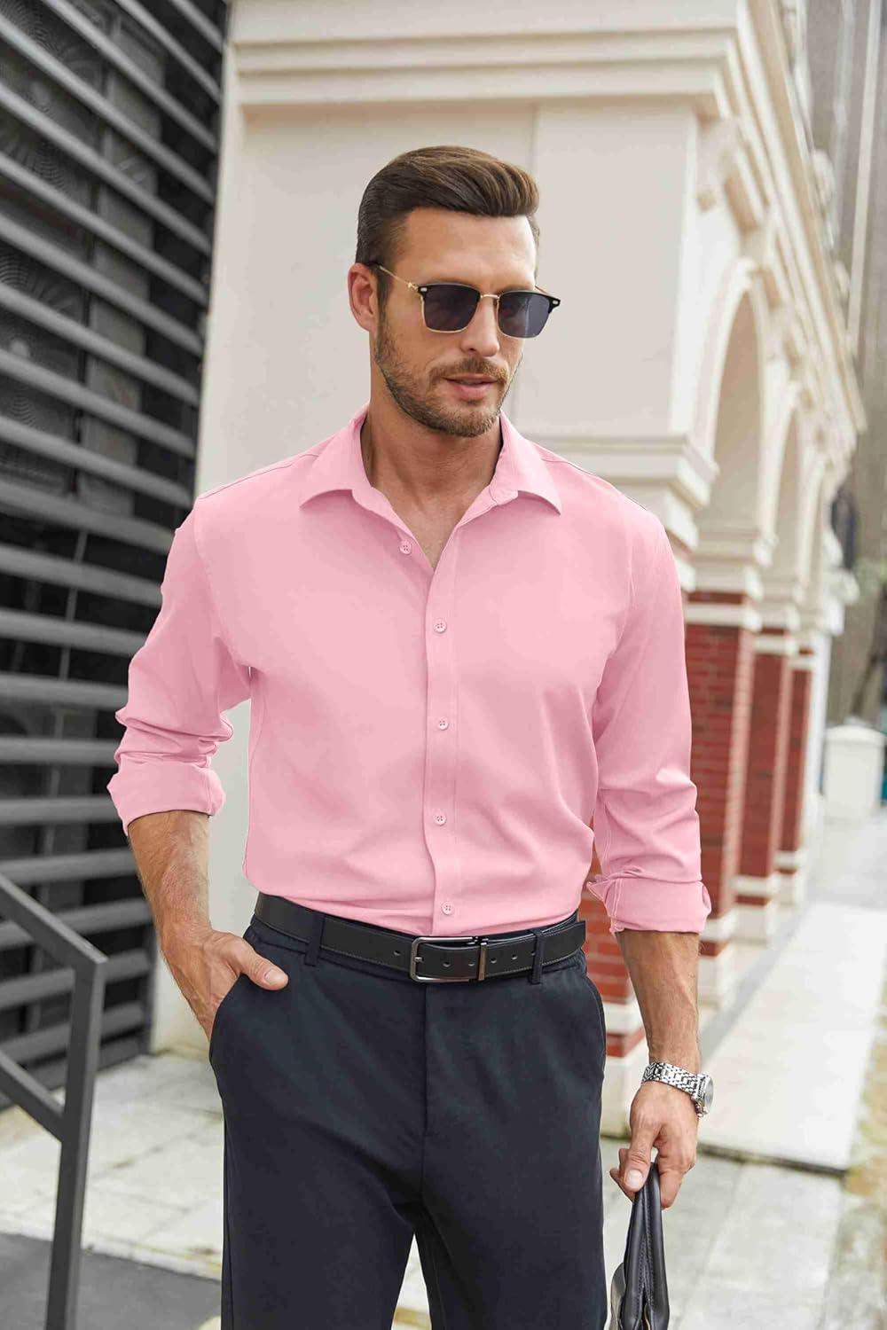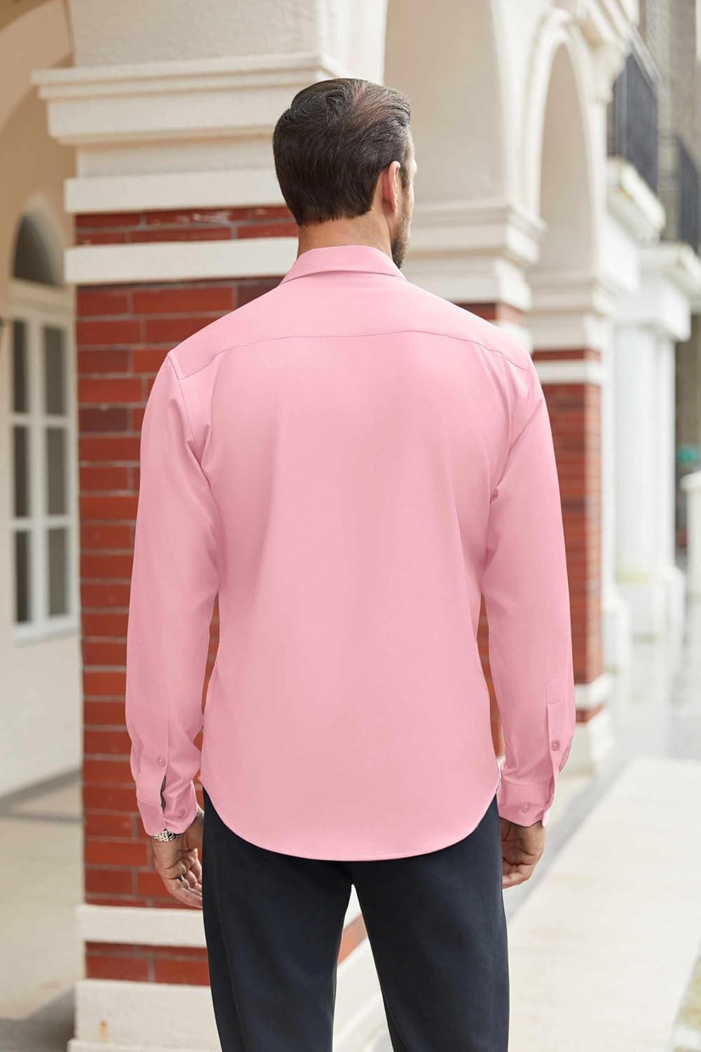 COOFANDY Mens Stretch Dress Shirts Long Sleeve Button Down Shirt Regular Fit Formal Business Shirts(Pink)