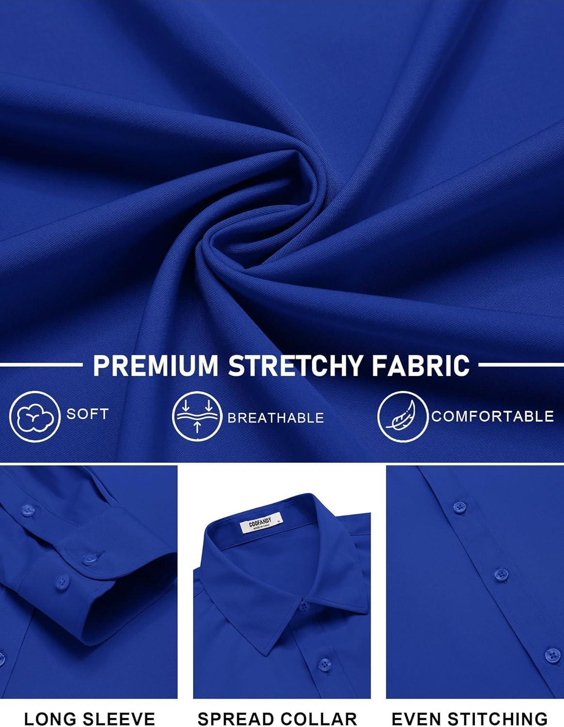 COOFANDY Mens Stretch Dress Shirts Long Sleeve Button Down Shirt Regular Fit Formal Business Shirts(Royal Azure Blue)