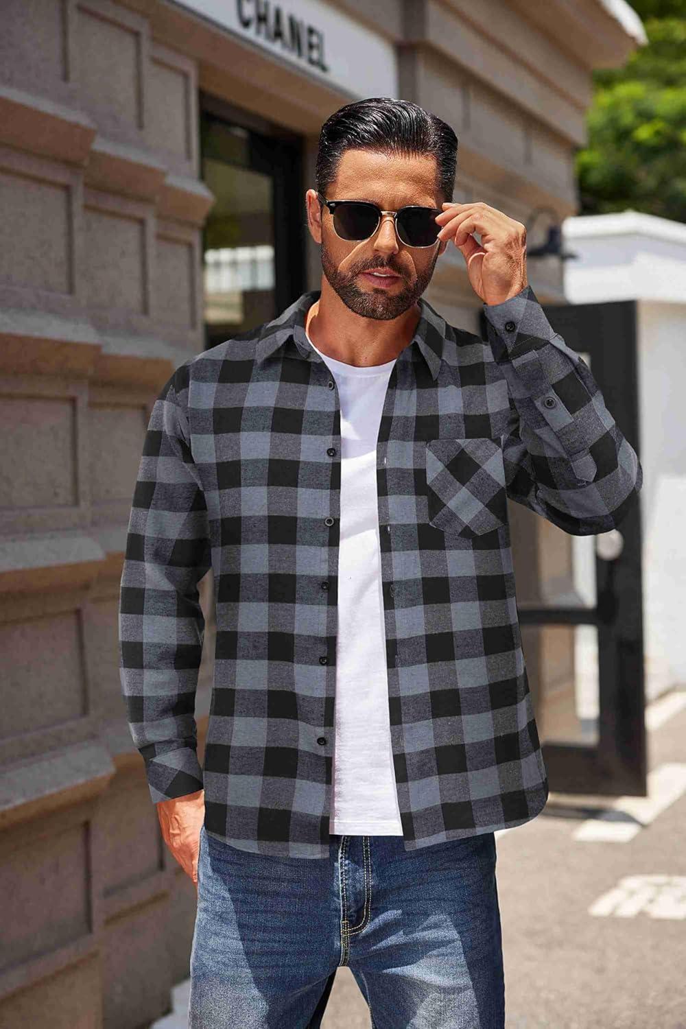 COOFANDY Men’s Flannel Shirts Casual Button Down Plaid Shirt Jacket Long Sleeve Fleece Shacket with Pockets(Gray)