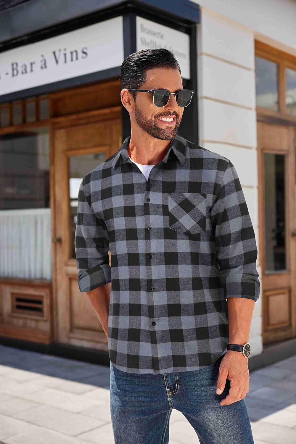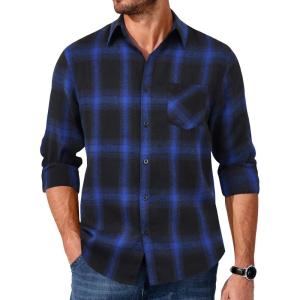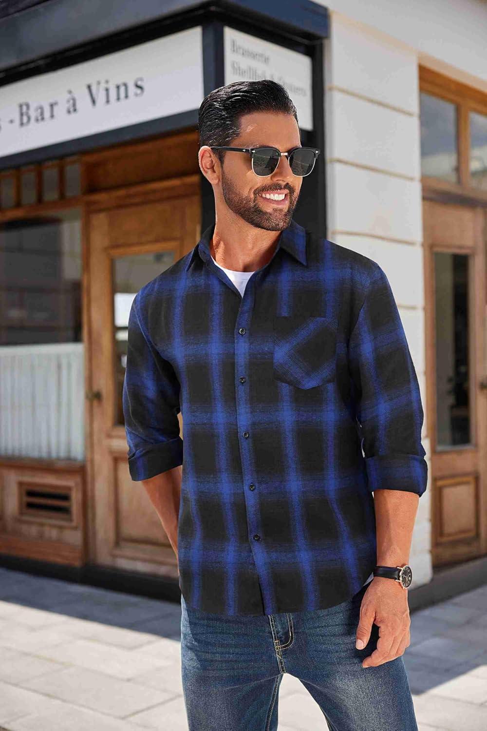 COOFANDY Men’s Flannel Plaid Shirts Long Sleeve Casual Button Down Shirt with Pockets(Plaid-black & Navy)