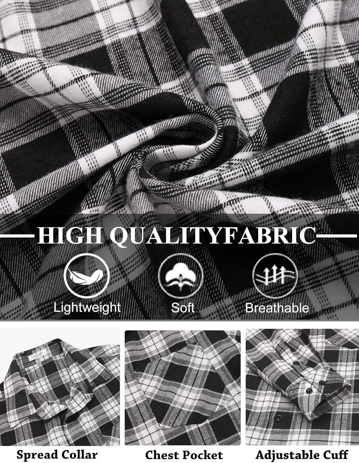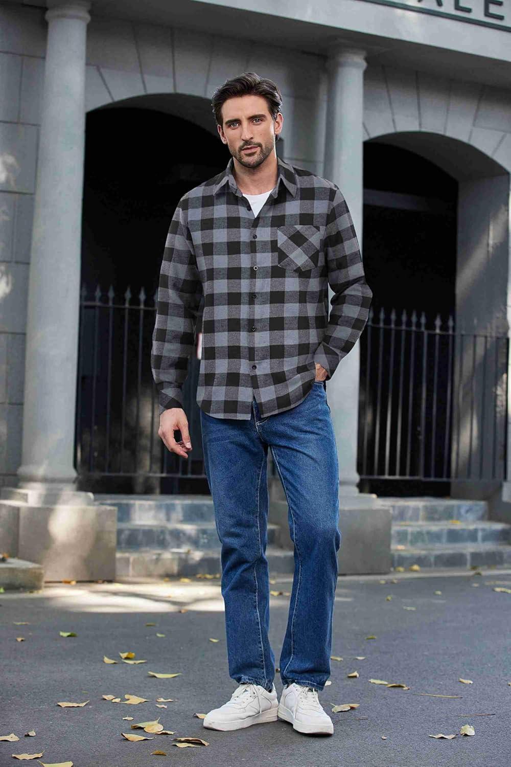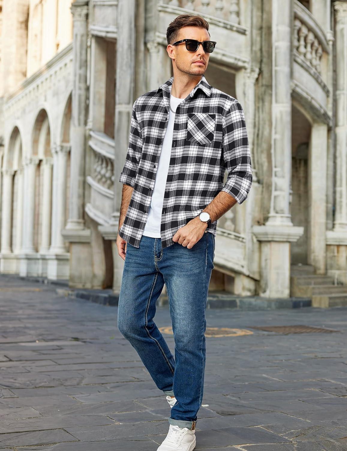 COOFANDY Men’s Flannel Plaid Shirts Long Sleeve Casual Button Down Shirt with Pockets(White Black Plaid)