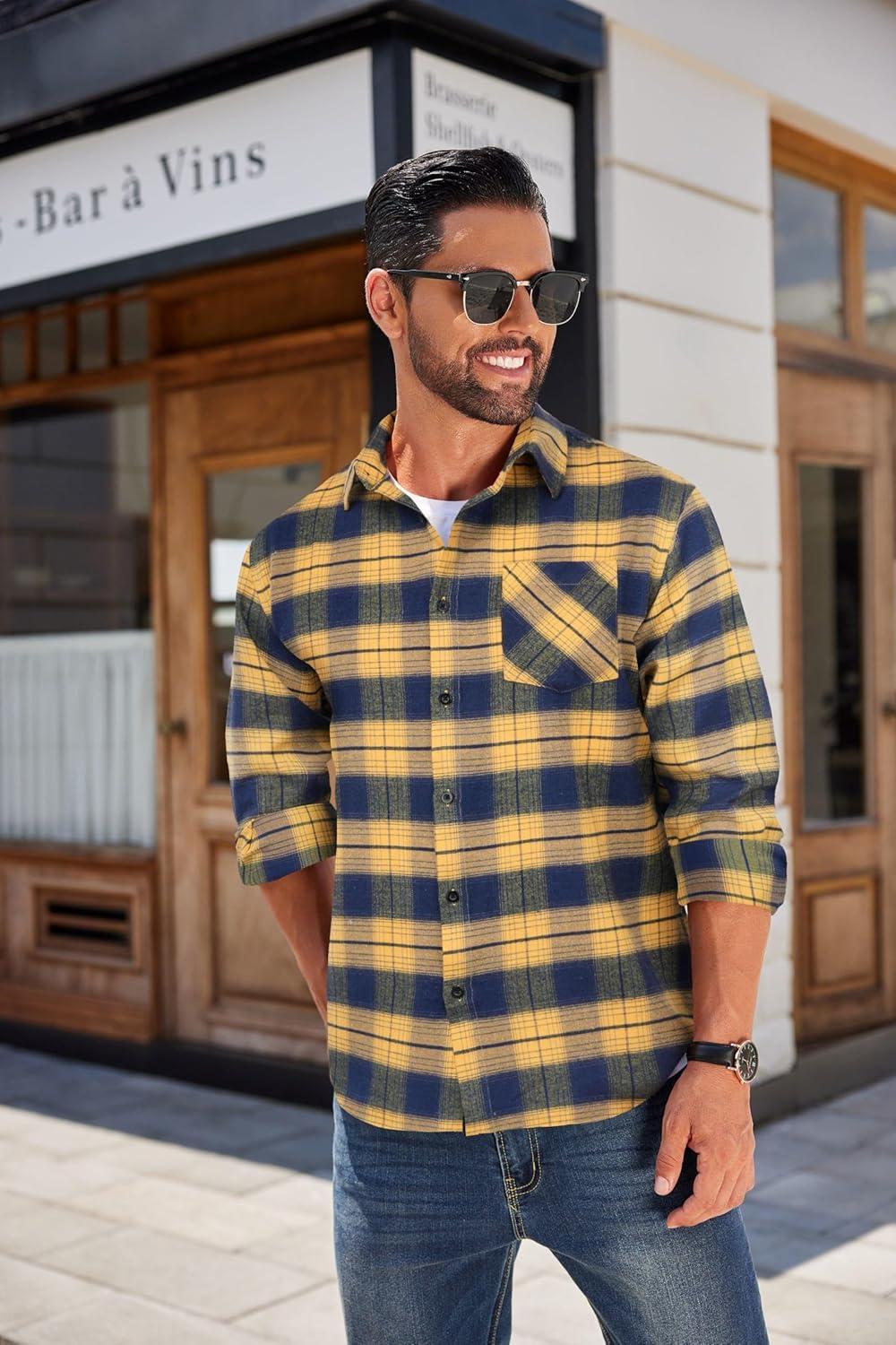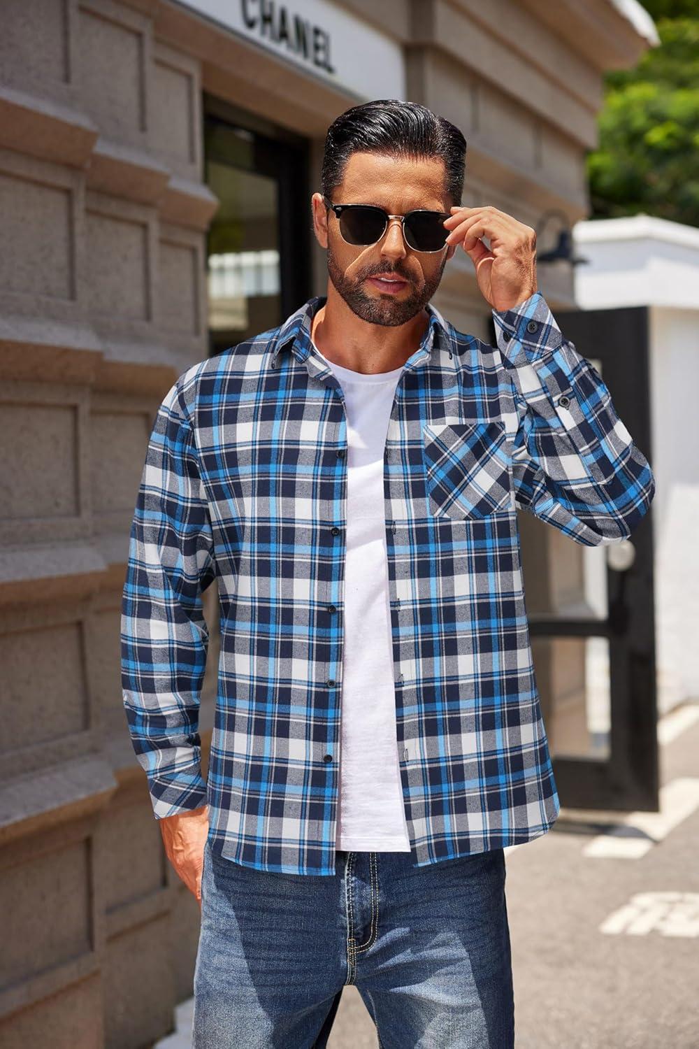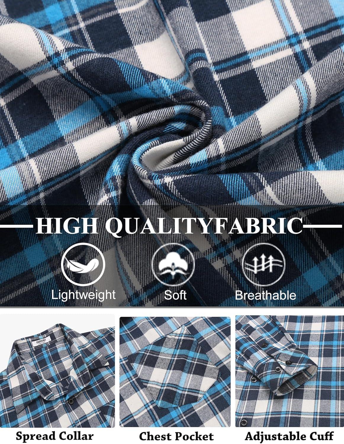 • COOFANDY Men’s Flannel Shirts Long Sleeve Button Down Plaid Shirt Lightweight Shirt Jacket(Blue & Navy Blue)