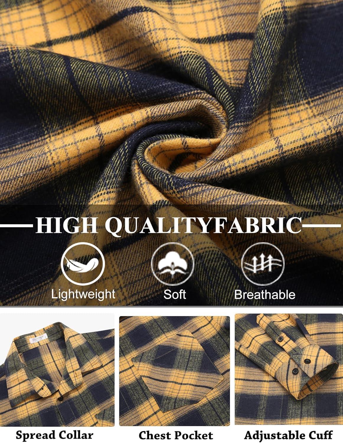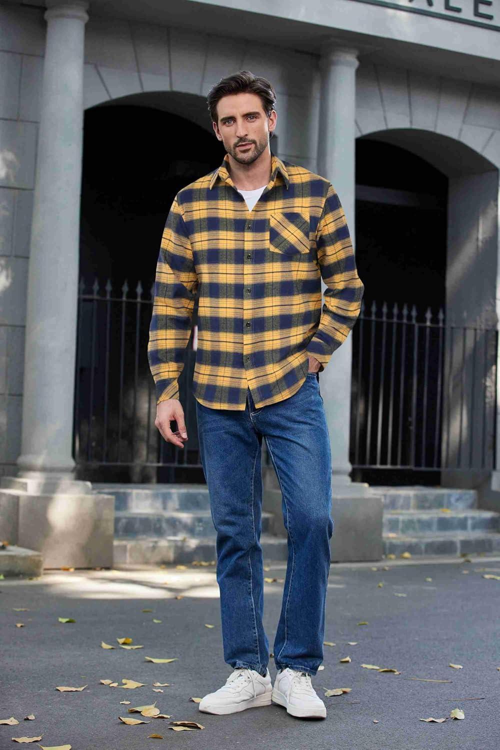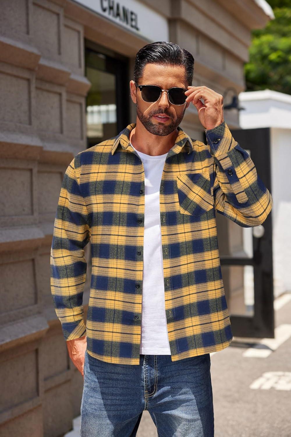 • COOFANDY Men’s Flannel Shirts Long Sleeve Button Down Plaid Shirt Lightweight Shirt Jacket(Blue & Navy Blue)