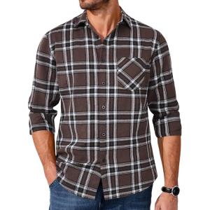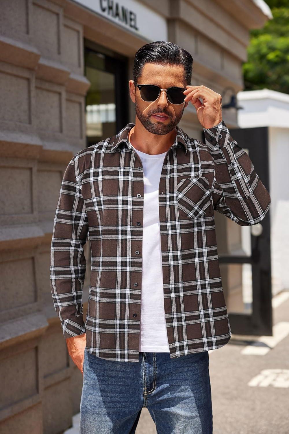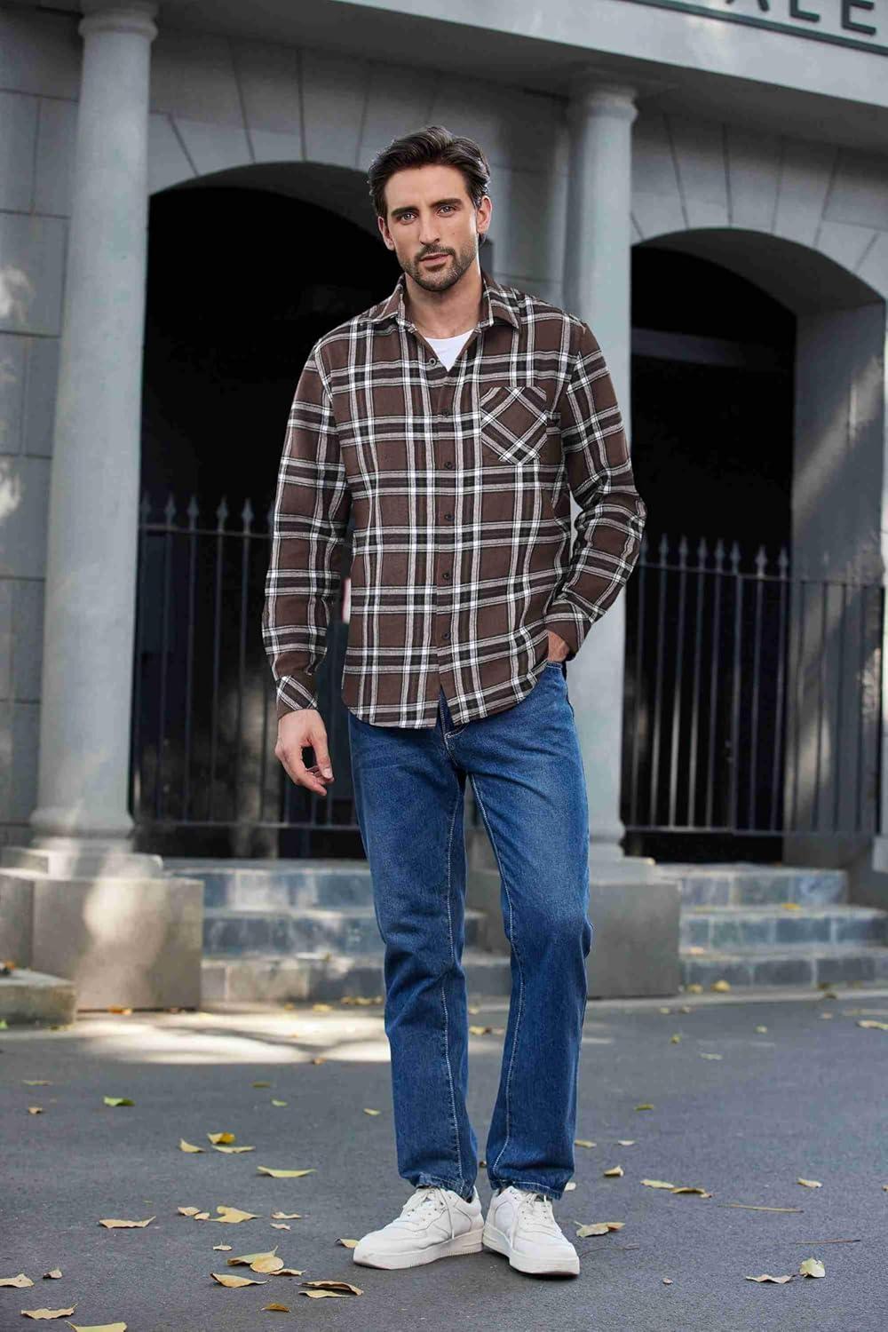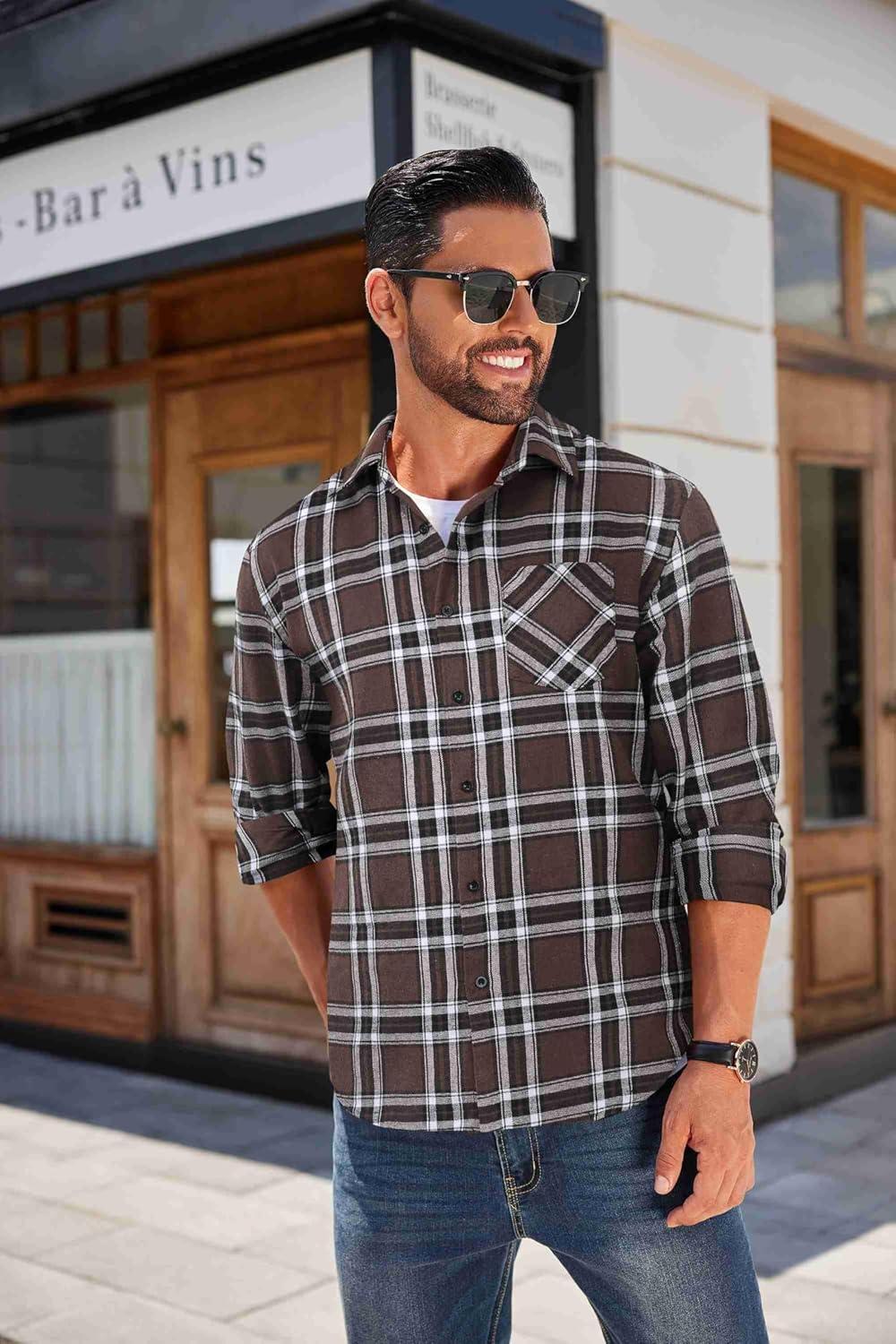 • COOFANDY Men’s Flannel Shirts Long Sleeve Button Down Plaid Shirt Lightweight Shirt Jacket(Brown White Black)