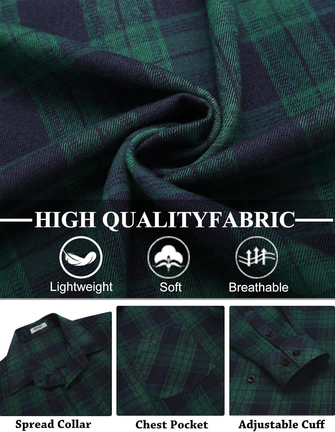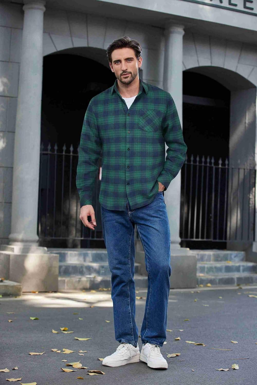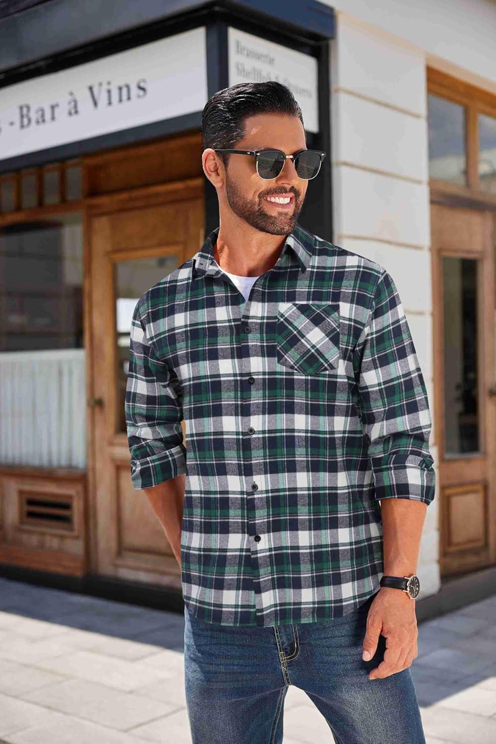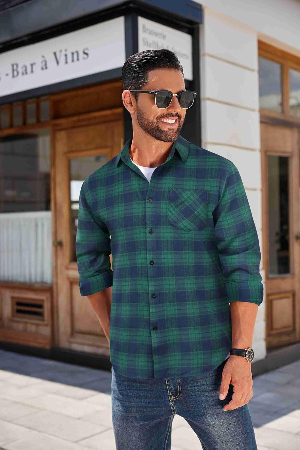 • COOFANDY Men’s Flannel Shirts Long Sleeve Button Down Plaid Shirt Lightweight Shirt Jacket(Green & Blue)