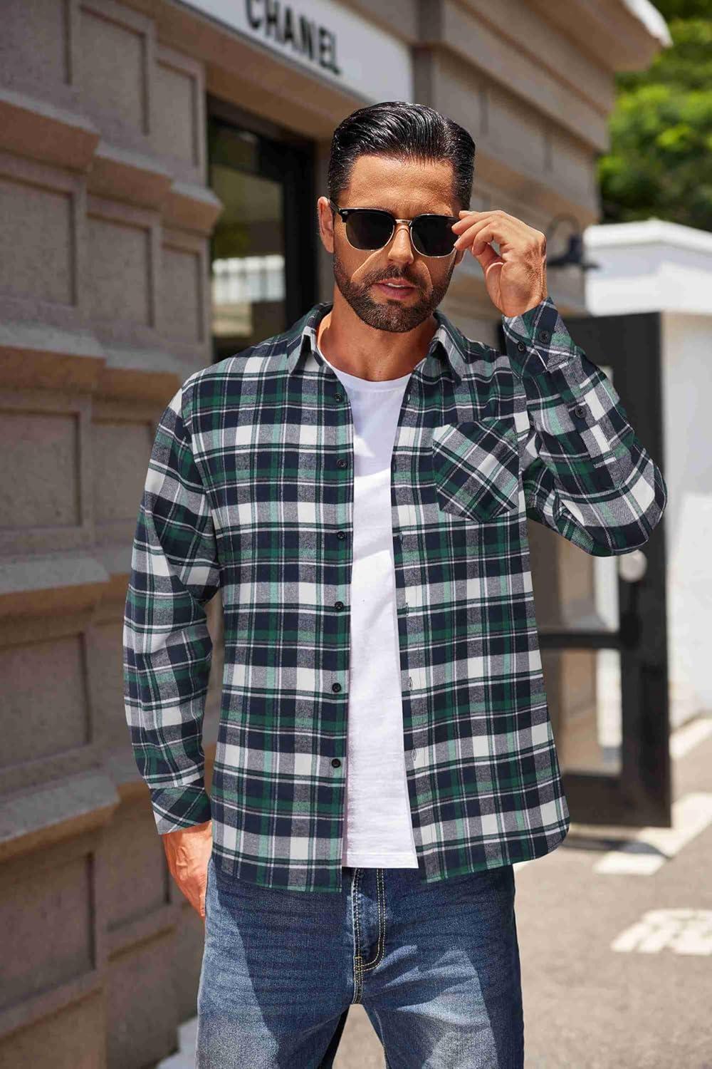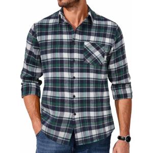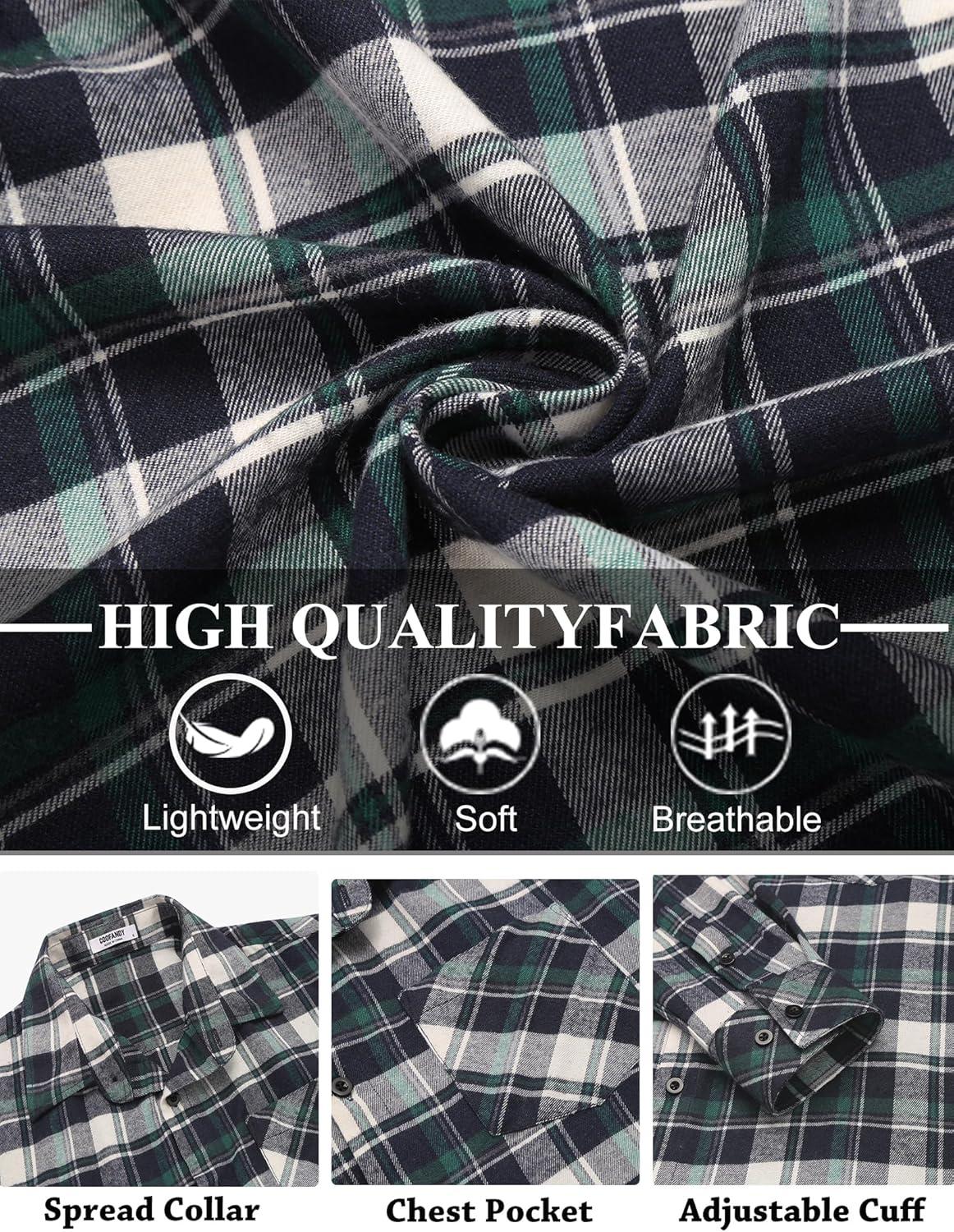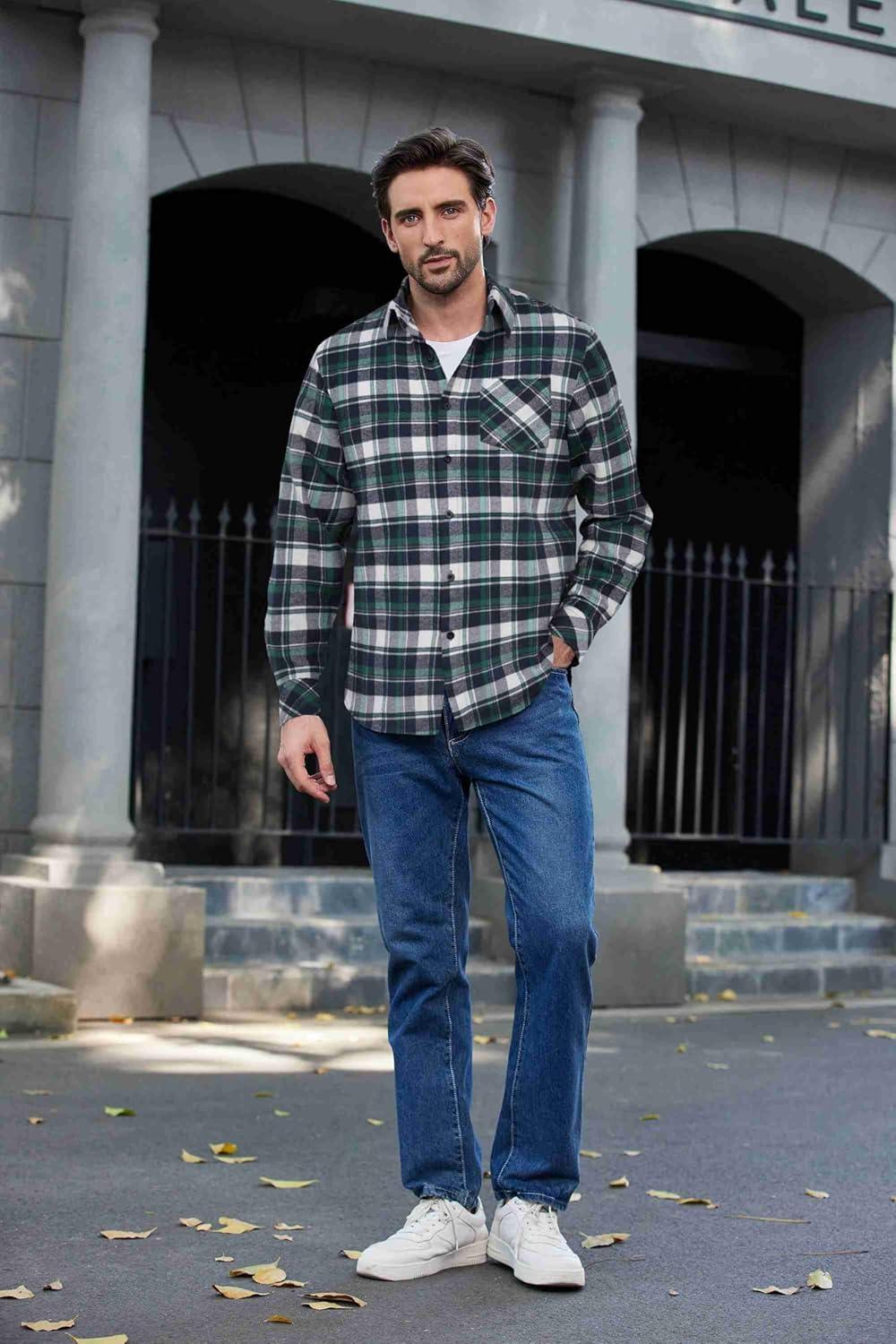• COOFANDY Men’s Flannel Shirts Long Sleeve Button Down Plaid Shirt Lightweight Shirt Jacket(Green & Blue)