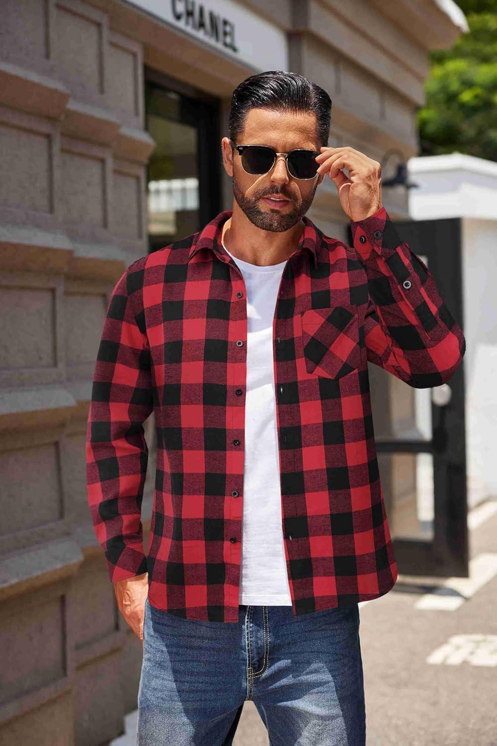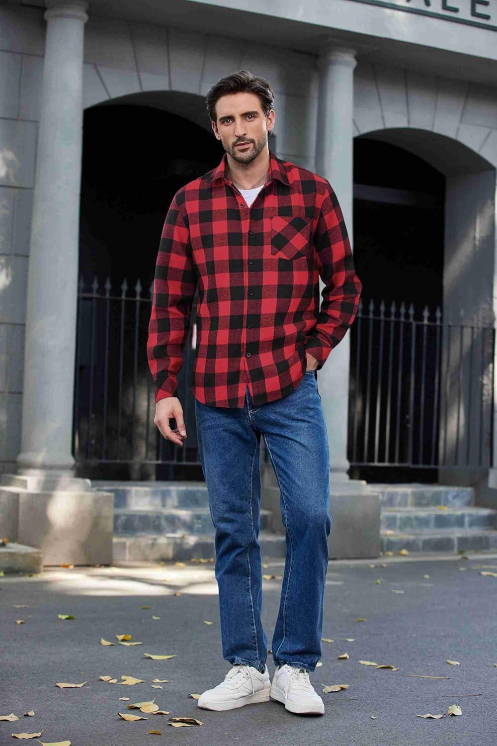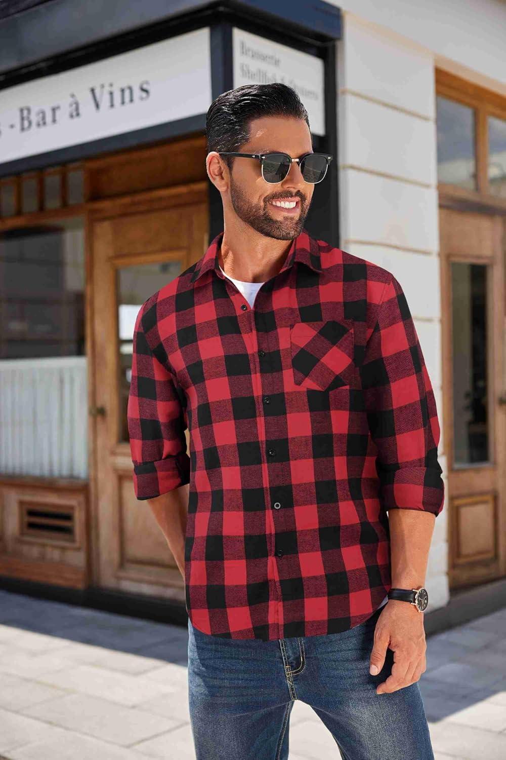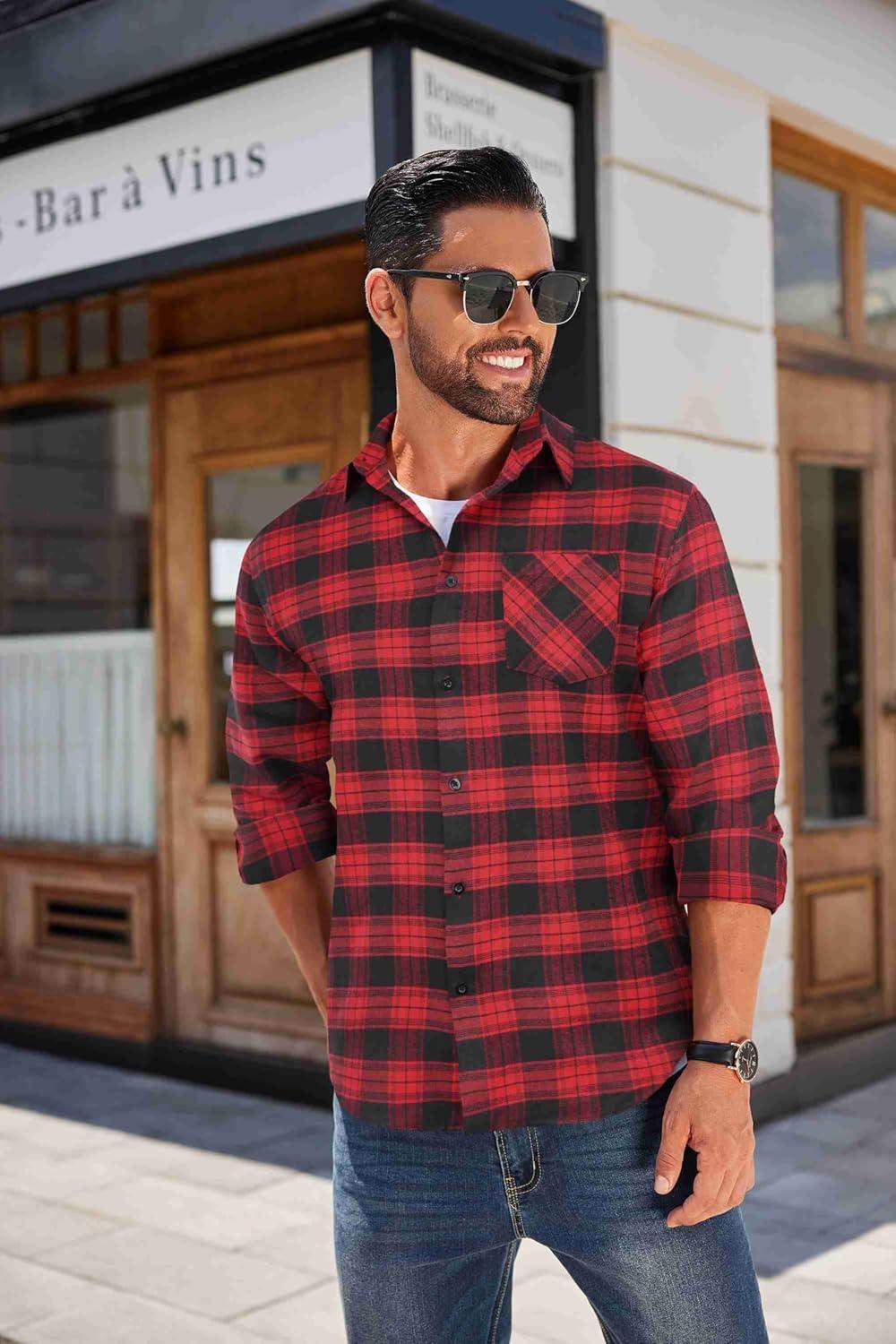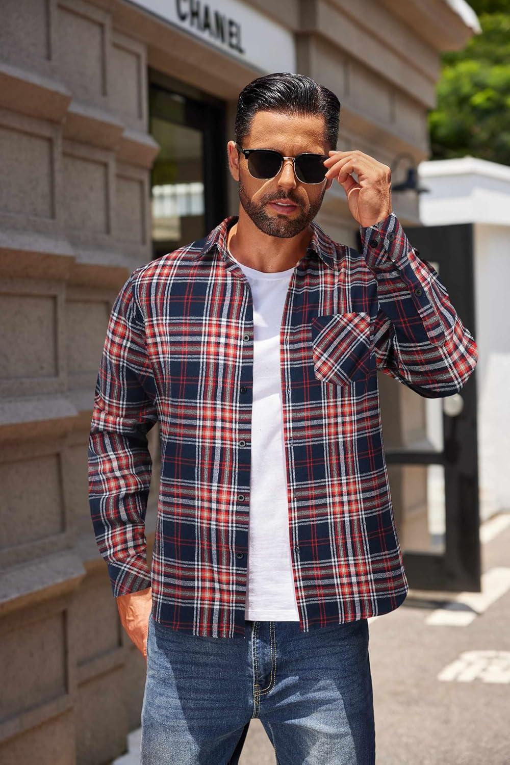• COOFANDY Men’s Flannel Shirts Long Sleeve Button Down Plaid Shirt Lightweight Shirt Jacket(Navy Blue Red)