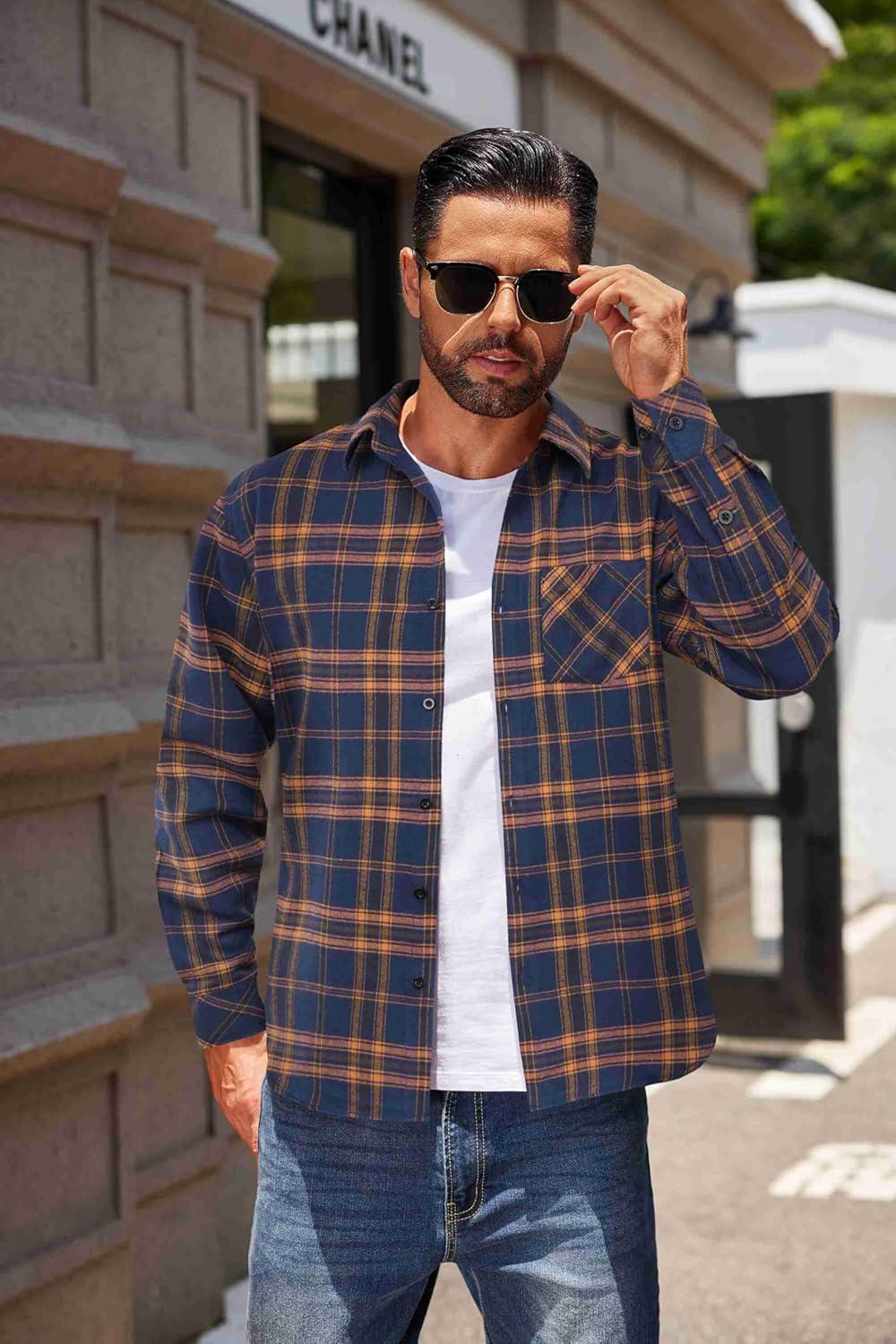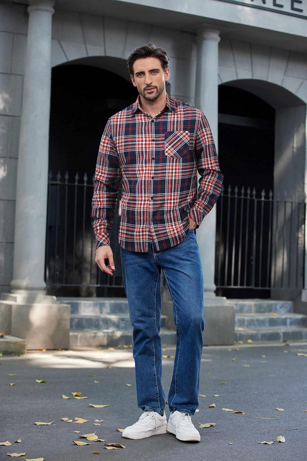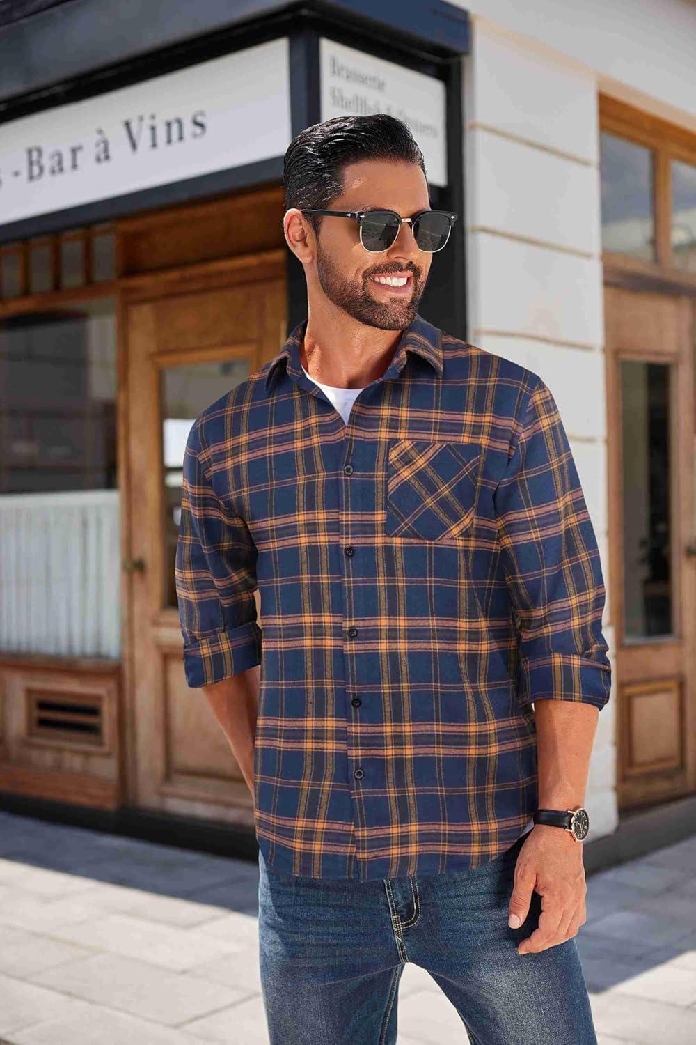 • COOFANDY Men’s Flannel Shirts Long Sleeve Button Down Plaid Shirt Lightweight Shirt Jacket(Orange& Navy Blue)