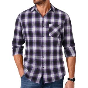 • COOFANDY Men’s Flannel Shirts Long Sleeve Button Down Plaid Shirt Lightweight Shirt Jacket(Purple & Black)