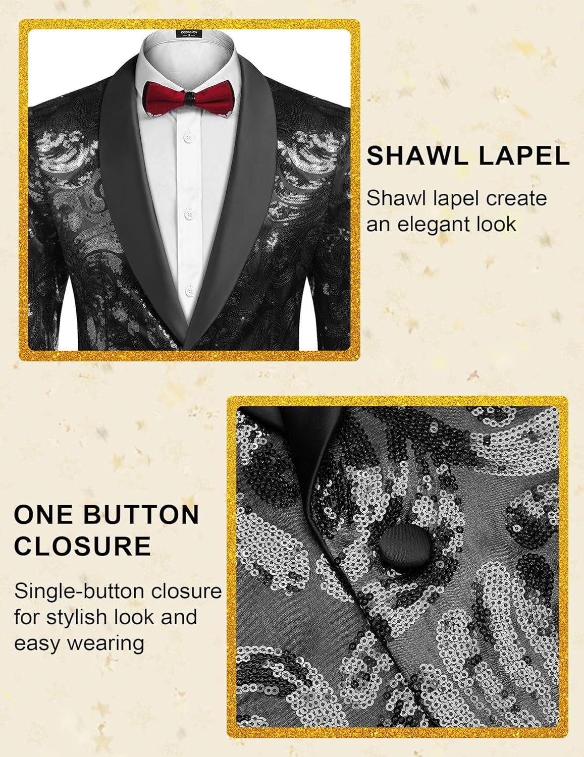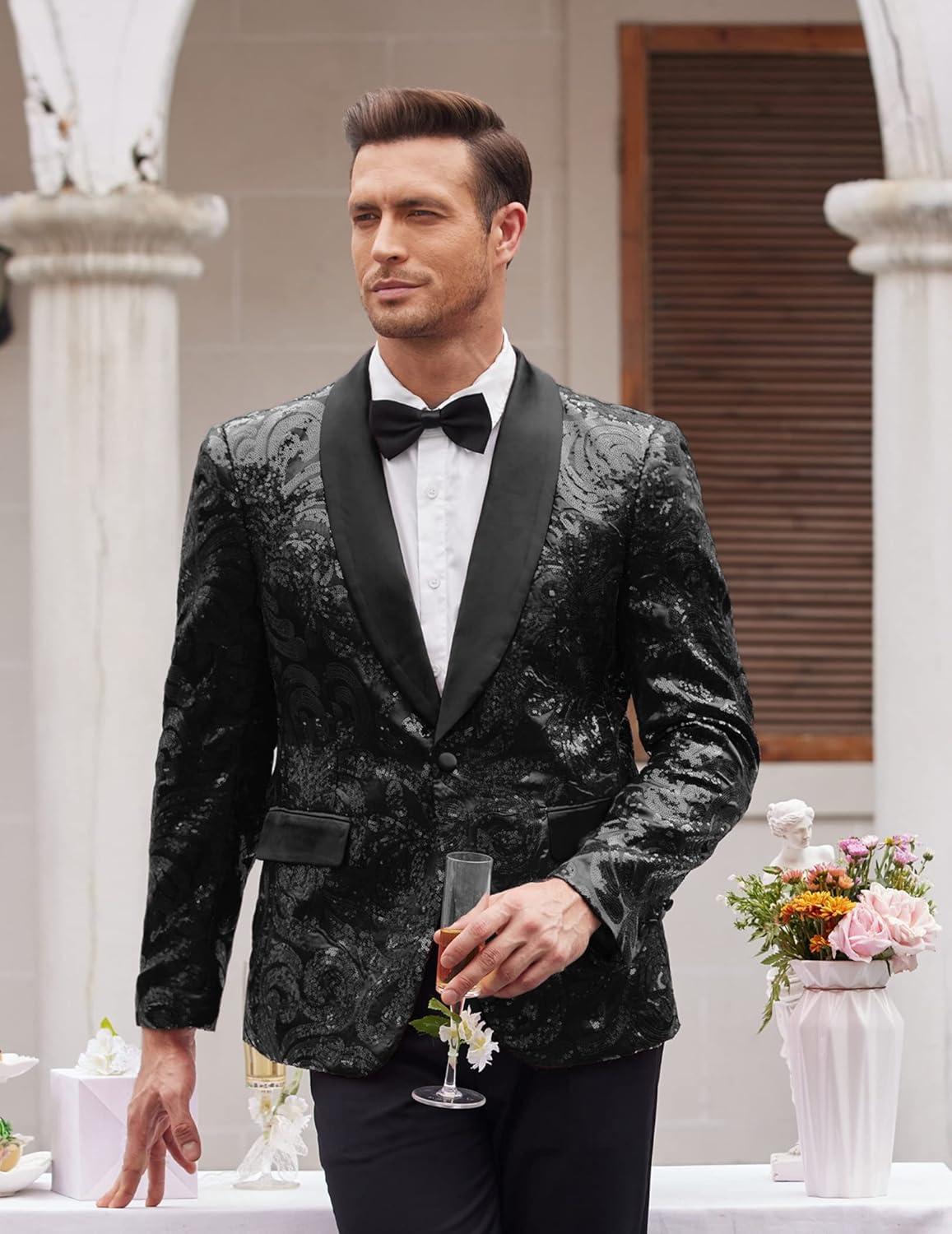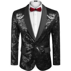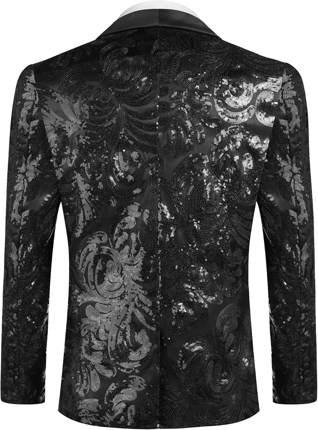 • COOFANDY Men’s Sequin Blazer Sparkly Glitter Jacket Shiny Floral Suit Jacket Stylish Party Wedding Banquet Prom Tuxedo(Black)
