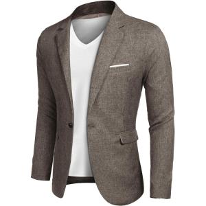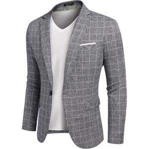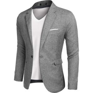 COOFANDY Men’s Blazer Casual Sport Coats Slim Fit One Button Suit Jacket Lightweight Sports Jacket(Linen Gray)