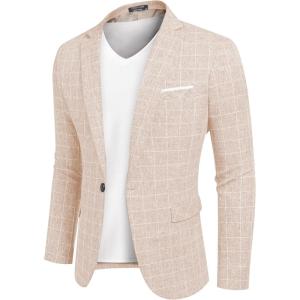 COOFANDY Men’s Blazer Casual Sport Coats Slim Fit One Button Suit Jacket Lightweight Sports Jacket(Plaid Blazer – Beige)