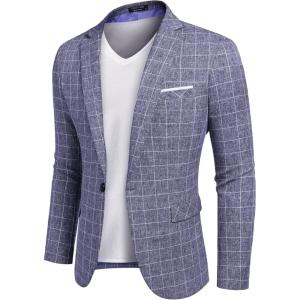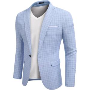 COOFANDY Men’s Blazer Casual Sport Coats Slim Fit One Button Suit Jacket Lightweight Sports Jacket(Plaid Blazer – Light Blue)